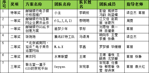 北京郵電大學(xué)世紀(jì)學(xué)院經(jīng)濟管理系學(xué)生在本次大賽北京賽區(qū)的具體獲獎信息如下: