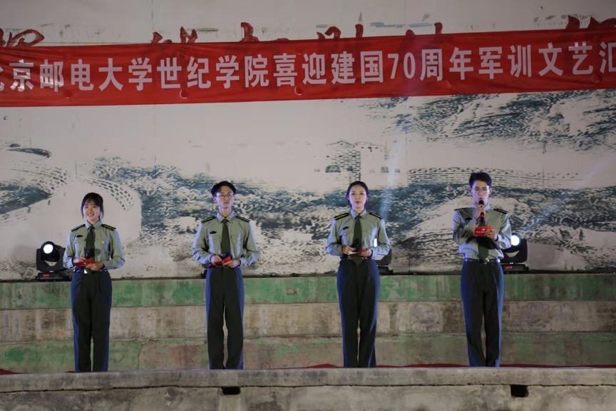 最后,由院合唱團帶來的歌曲《走向復(fù)興》,為本次晚會畫上了圓滿的句號。“喜迎建國70周年”軍訓(xùn)文藝晚會激情澎湃,青春飛揚,充分展示了我院2019級新生積極向上的精神面貌及青春活力,也為即將到來的祖國70華誕獻禮。(北郵世紀(jì)軍訓(xùn)團供稿)
