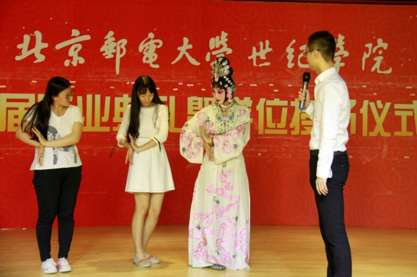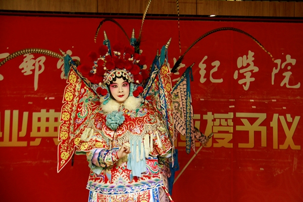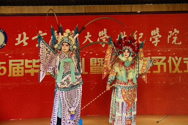 同學們熱情高漲,看得聚精會神,聽得津津有味。在藝術家們的表演中,同學們欣賞到了國粹,同時也感受到了中國傳統文化的美和京劇對中國傳統文化的深淵影響。表演過程中叫好聲、熱烈的掌聲此起彼伏。講座最后,表演者邀請同學們上臺,講解了京劇演員應具備的基本素養,教得認真,學得仔細,青春唯美的京劇藝術走進了同學們的內心。