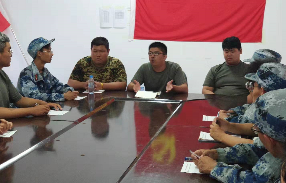 為了進一步貫徹落實2019級新生軍訓團臨時黨支部精神,充分發揮戰斗堡壘作用,進一步加強同學們對黨的認識,特此,在9月5日晚,臨時黨支部開展了一場題為《青春心向黨,建功新時代》的“軍訓聊吧”第四講。軍訓團臨時黨支部組織委員趙鑫帶領二十余位新生代表進行了暢談。