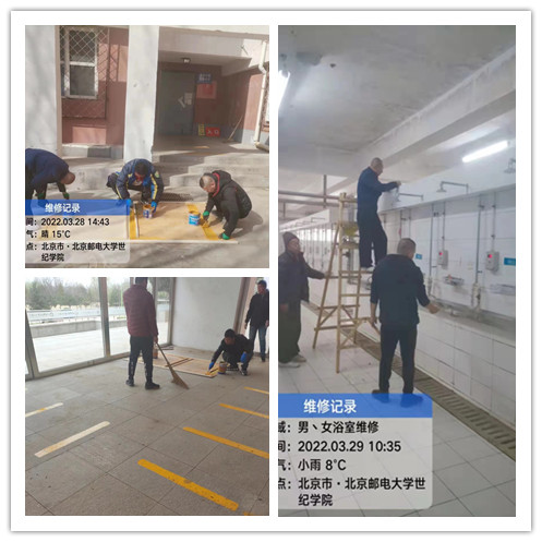 工程部全體維修員工返校即返崗,抓住師生返校前時間差,做好維修計劃并分時段落實。先后按計劃完成了圖書館臺階維修、全院路燈檢修、校名石描紅、施畫防疫一米線、男女浴室檢修、宿舍樓公共區域水電等公共設施檢修,行知樓公共衛生間設施檢修等,運動場圍欄維修、公園圍欄維修、學生公寓13和14號樓前路燈更換等檢修任務。基建部按照輕重緩急,結合天氣及學院實際,有序落實各項工程建設,目前已完成明德樓中部衛生間污水管道改造、浴室鍋爐房給水管道、浴室污水管道更換、垃圾分類崗亭、綜合樓屋面防水更新等項目。后勤處將繼續排除隱患、美化環境,爭取為師生提供更有效優質的維修服務。(后勤處王曉偉、張平 供稿)