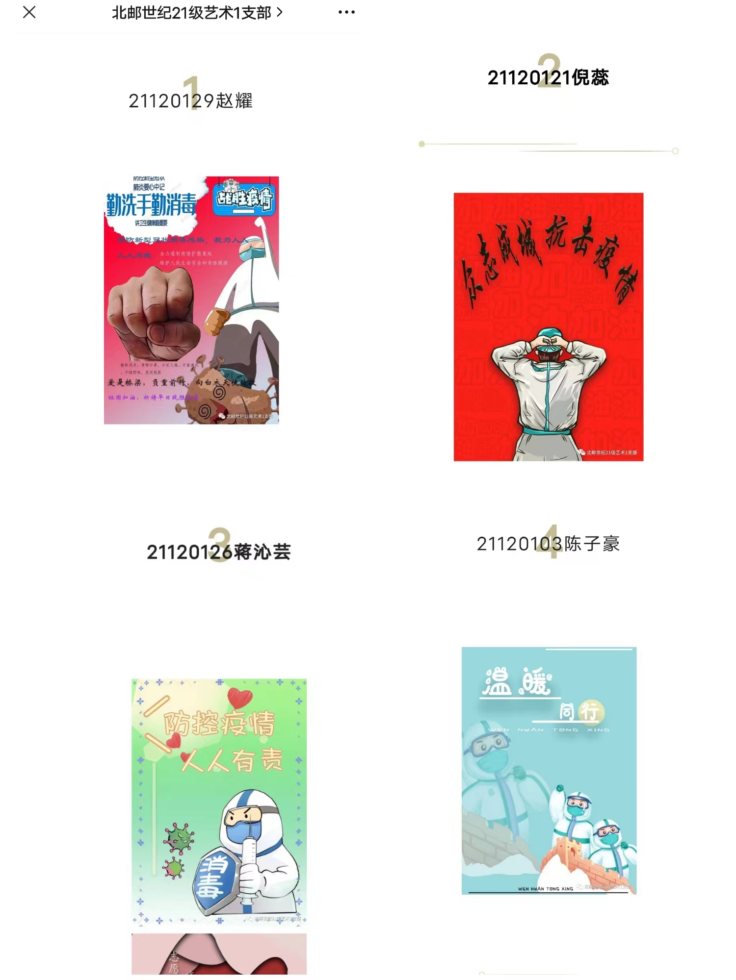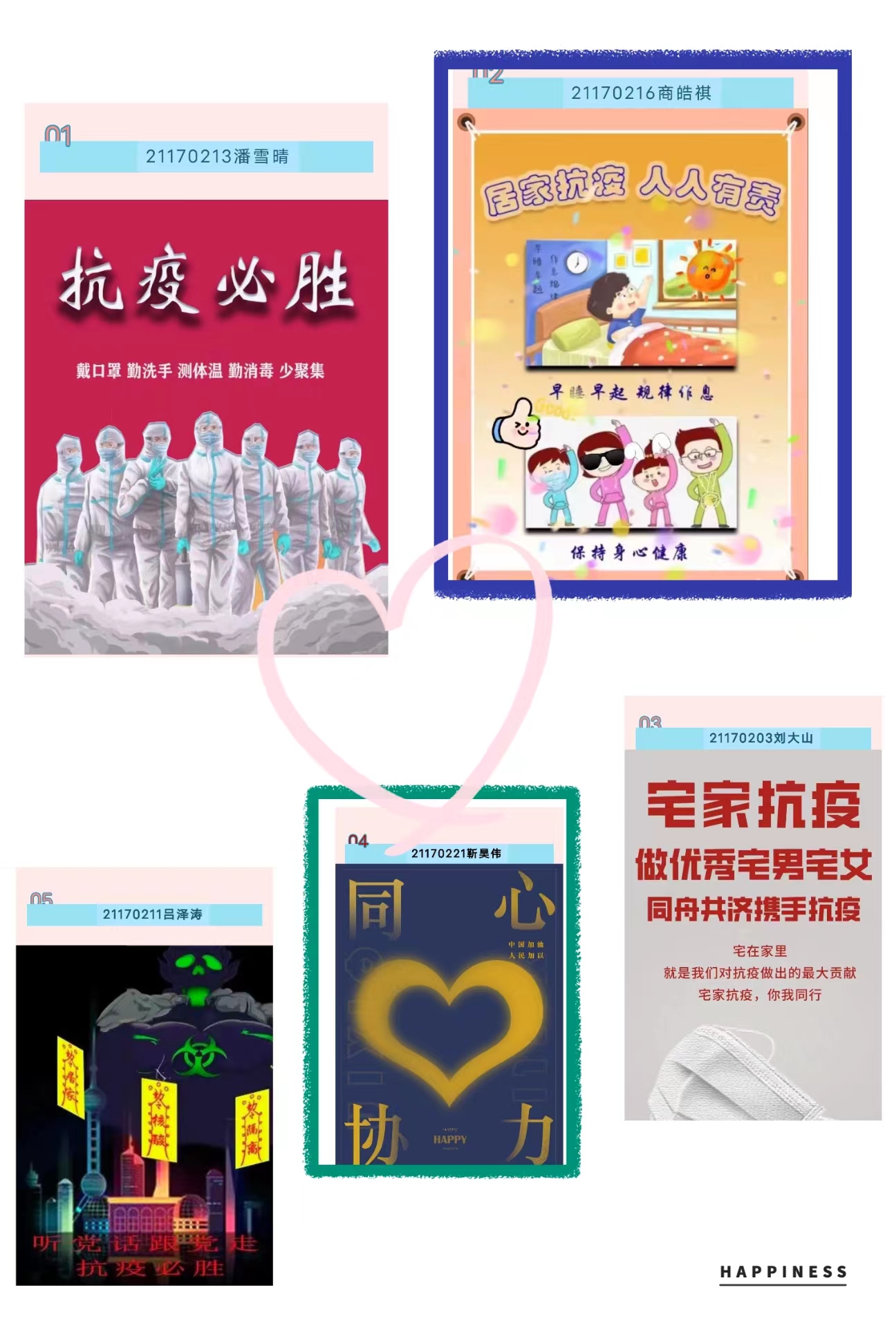 此次活動以線上征集形式開展,得到了同學(xué)們的積極響應(yīng),收到電子海報作品20余份。同學(xué)們的作品內(nèi)容豐富、主題鮮明,表現(xiàn)了同學(xué)們對抗疫一線工作人員和抗疫志愿者的敬佩與感恩,傳遞同舟共濟(jì)、頑強(qiáng)拼搏、共同抗疫、樂觀向上的精神風(fēng)貌。