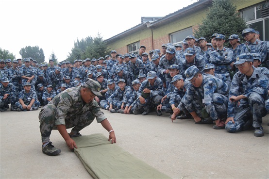隨后,教官對同學們進行了內務整理的授課,教大家如何將被子疊成“豆腐塊”,以及如何將物品擺放的合理有序。經過學習和實踐,同學們疊的“豆腐塊”雖然還沒有達到有棱有角的程度,但已經初見雛形。與此同時,大家也能正確擺放鞋、盆、箱、包的位置。看似簡短的訓練讓同學們認識到無規矩不成方圓,為剛步入大學的學子建立良好的生活習慣打下堅實的基礎,推動新生們邁出了自立自強的第一步。