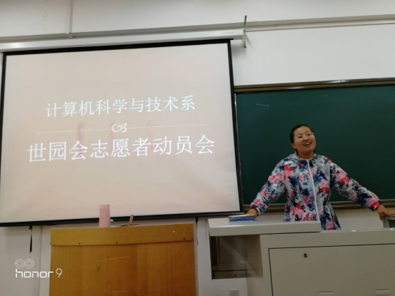 4月29日,2019北京世園會成功開幕,我院在世園會運營期間招募1200余名志愿者。5月16日—5月19日,計算機科學與技術系的世園會志愿者們將連續提供四天的志愿服務。為了提高志愿者服務的質量,保障世園會的正常運作。5月15日下午,計科系在學思樓101召開世園會志愿者動員會和培訓。出席本次會議的有院團委副書記高莎老師、計科系主任劉載文教授、計科系副主任張敏杰老師、計科系學生黨支部書記李熠老師以及輔導員楊乾乾老師和董琪老師,會議由李熠老師主持。