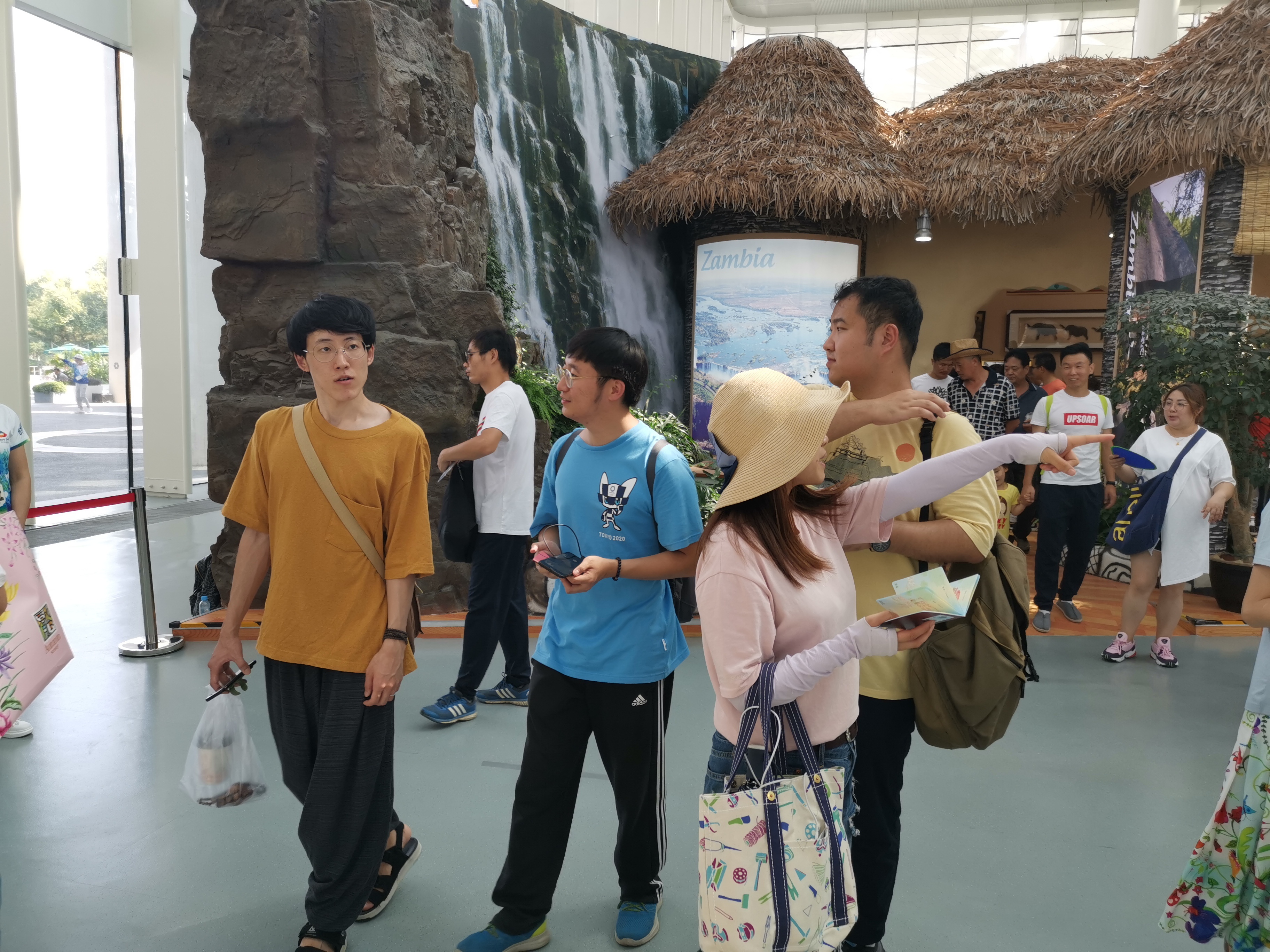 隨后,一行近二十人來到了別具特色的中國館,弧形的主體建筑使外籍教師和學生們大呼壯觀,館外雖已長隊如龍,大家仍堅持排隊進館。館內展示了《詩經》中的植物標本,以永生苔蘚和動態光影構建出的《千里江山圖》,通過園林植物這一載體,老師和學生們領略到中華文化的瑰麗壯美。韓國留學生第一次來到中國,他們在世園會里欣賞到中國各地風格不同的園藝景觀,記住了許多有趣的“中國符號”。日本教授表示,感謝學院國際處提供參觀的機會,世園會美景如畫,大家對中國館的弧形建筑印象深刻。