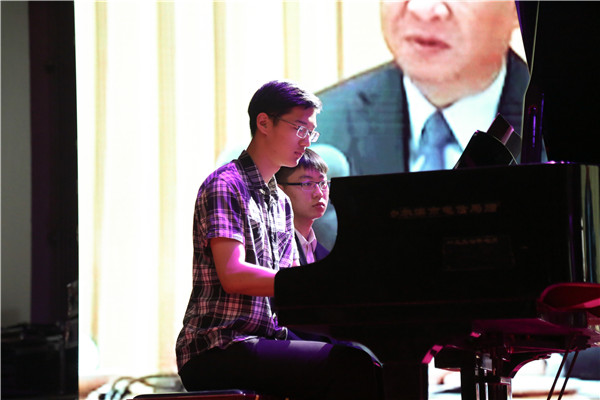我院合唱團作為嘉賓表演隊演唱了《我和我的祖國》、《我愛你中國》兩首四聲部合唱作品,嘹亮的歌聲,飽滿的熱情,唱出了世紀學子與祖國同呼吸共命運的深厚情感,獲得特別貢獻獎。