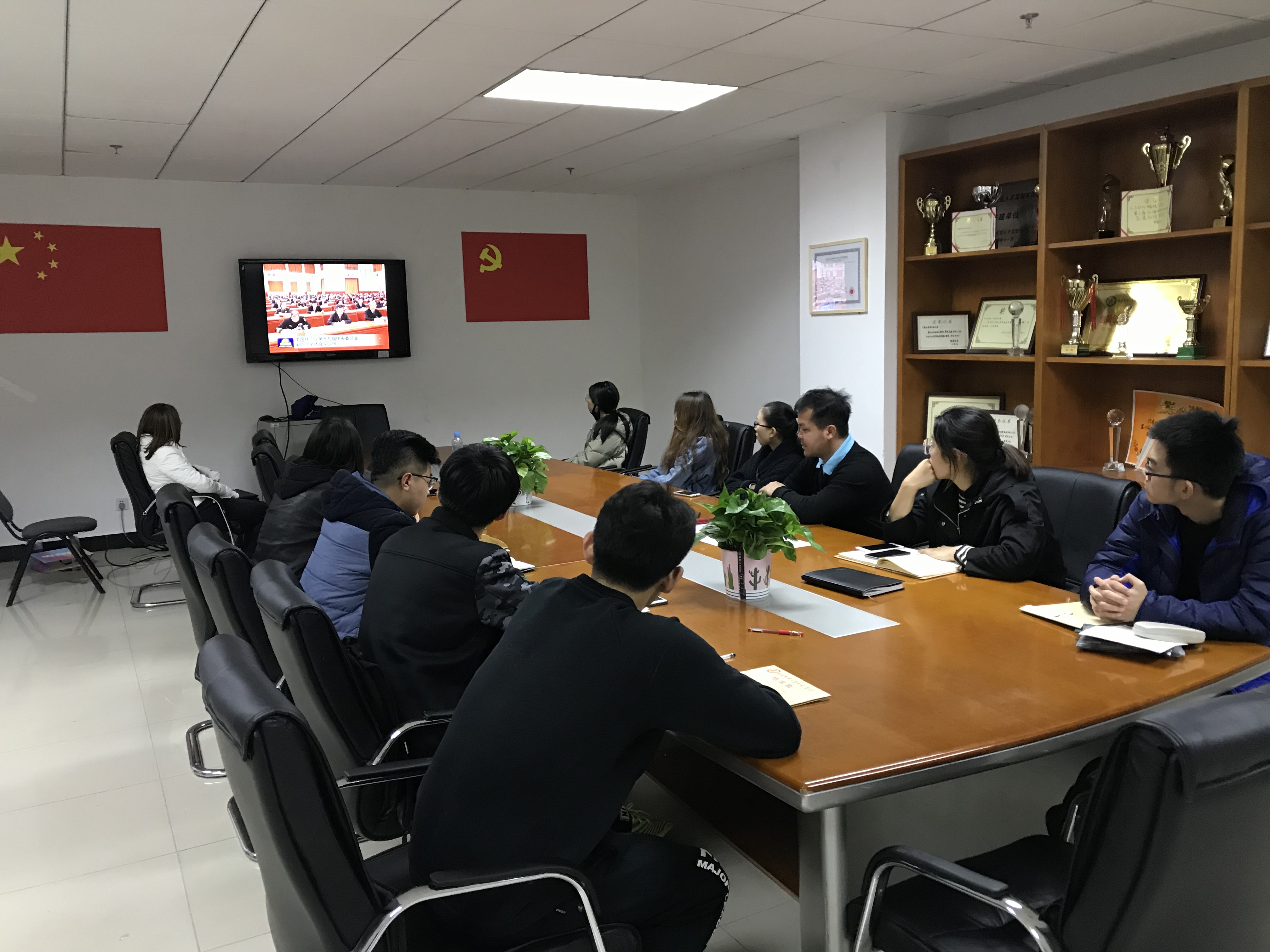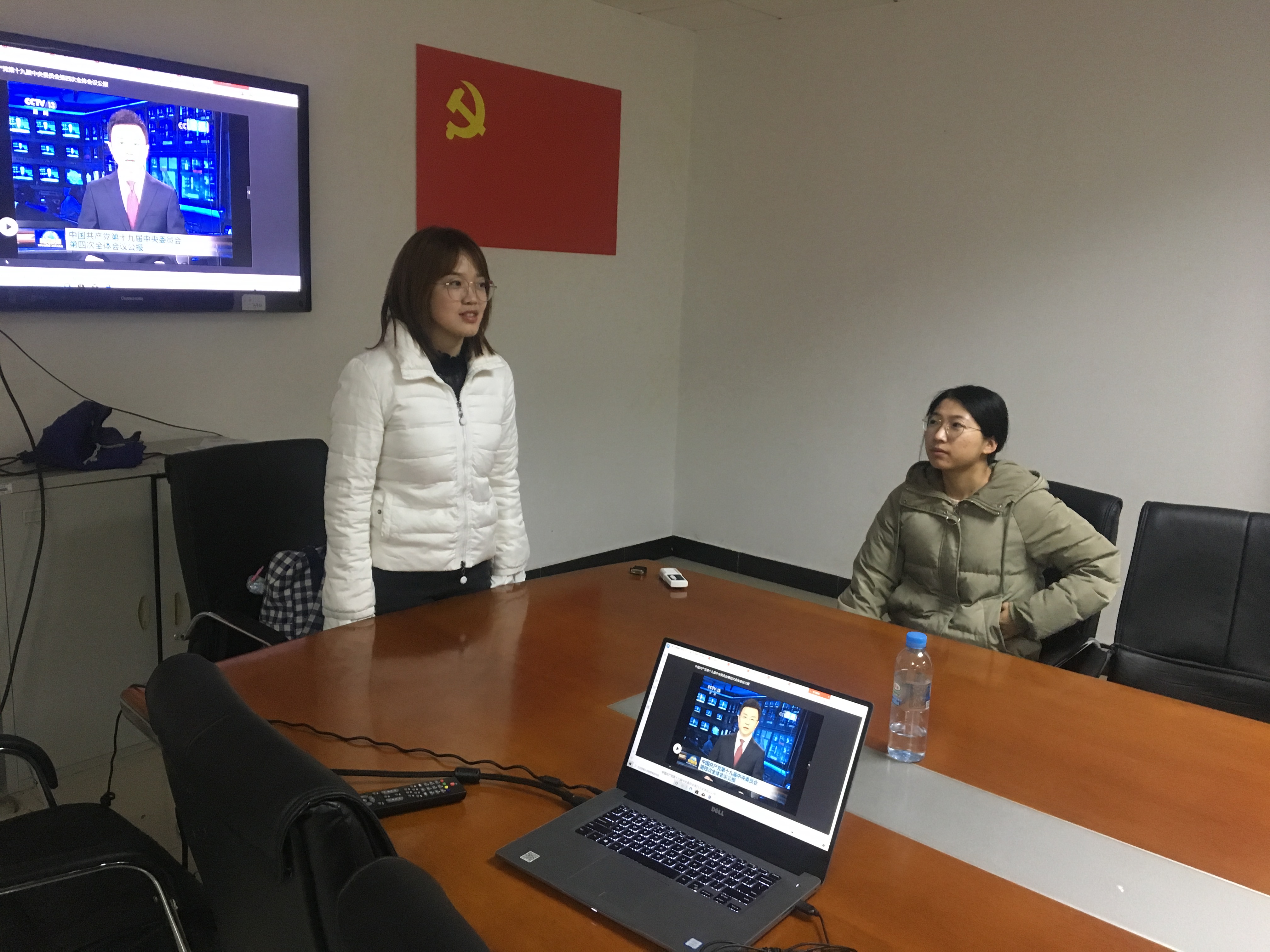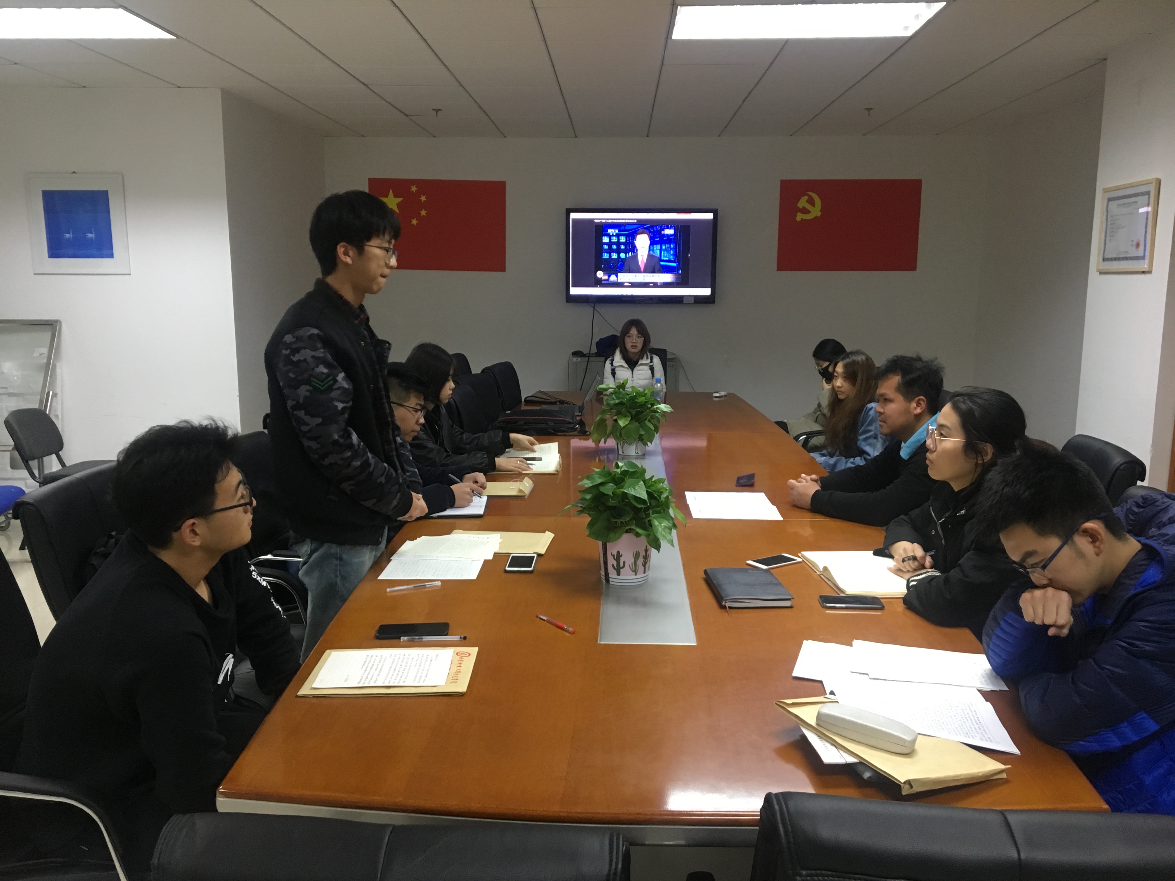 首先,黨支部書記李熠傳達了全會精神,他表示“黨的十九屆四中全會是一次具有開創(chuàng)性、里程碑意義的重要會議,我們?nèi)w師生黨員、積極分子要認真學習、深刻領(lǐng)會、全面貫徹、堅決落實,把思想和行動統(tǒng)一到全會作出的一系列重大決策部署上來。隨后,黨員同志們通過觀看視頻新聞,認真學習了十九屆四中全會的會議內(nèi)容。隨后,黨支部書記李熠同志對在座黨員提出要求:新中國成立70年來的巨大成就,證明了中國堅持走中國特色社會主義制度道路是正確的選擇。中國共產(chǎn)黨作為中國的領(lǐng)導(dǎo)核心,在關(guān)鍵階段不斷進行自我改進和完善,是中國改革和發(fā)展得以延續(xù)的重要保證。作為基層黨員和入黨積極分子,更應(yīng)該堅定中國共產(chǎn)黨的領(lǐng)導(dǎo),把學習貫徹落實好十九屆四中全會四中全會精神作為現(xiàn)階段的重要任務(wù)。
