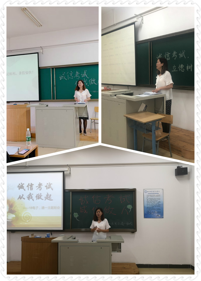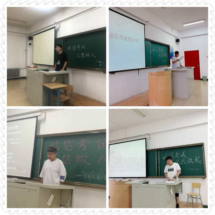 通過(guò)本次主題班會(huì),增強(qiáng)了同學(xué)們的誠(chéng)信考試意識(shí),營(yíng)造了誠(chéng)信考試光榮、違紀(jì)作弊可恥的良好學(xué)風(fēng),預(yù)祝同學(xué)們?cè)谄谀┛荚囍薪怀鲆环轁M意的答卷。(通信系18級(jí)通信工程喬婧輝供稿)