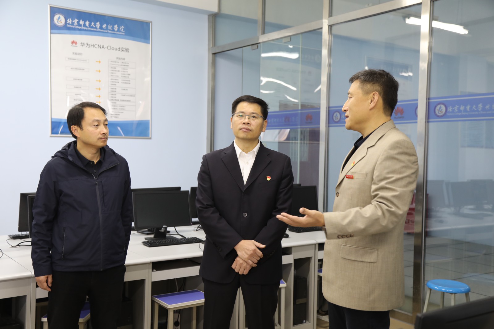 宋紅偉檢察長一行調研了學院行知樓實驗教學中心,在參觀了由中國長城博物館與學院聯合舉辦的“長城文化進校園”系列活動之“眾志成城——紀念‘愛我中華 修我長城’社會贊助活動40周年”主題巡展后,特別調研了學院北京高等學校實驗教學示范中心——5G仿真平臺實驗室、大數據存儲/大數據綜合實訓實驗室、互聯網金融實驗室、全景虛擬商業社會環境(VBSE)綜合實驗室及數字媒體實驗教學中心,并聽取了學院就學院科研團隊主導創設的“手機(移動終端)動漫標準”“文化藝術AR呈現技術需求及應用框架”“云游戲技術要求及參考架構”國際標準及《手機動漫文件格式》國家標準的介紹。