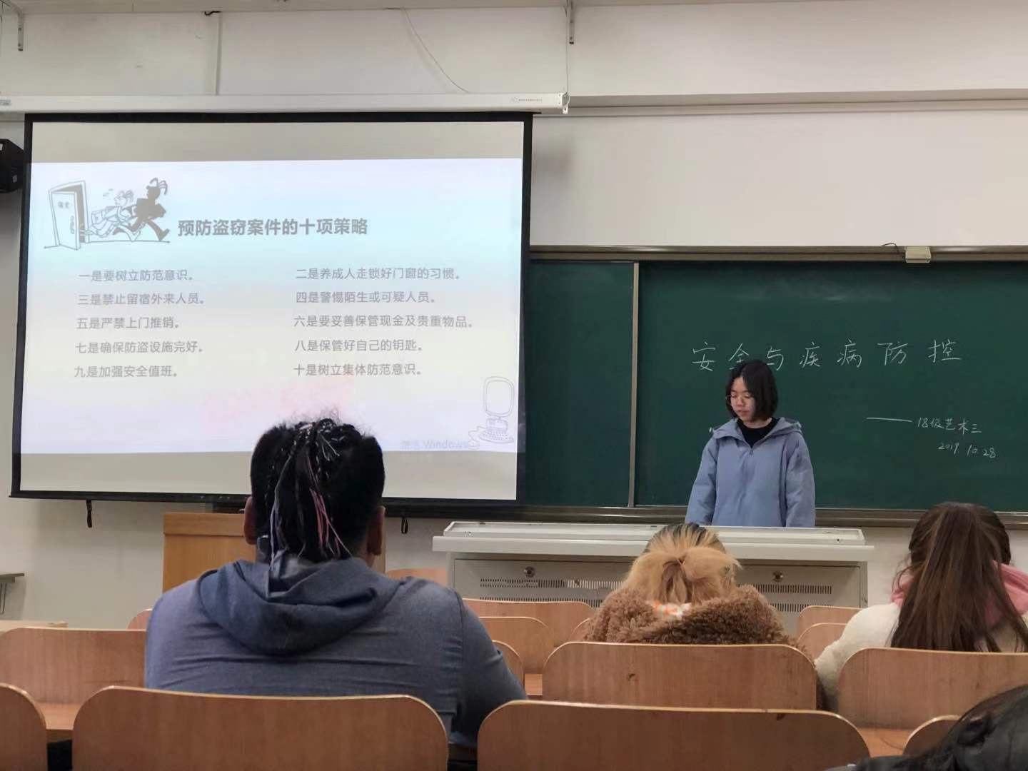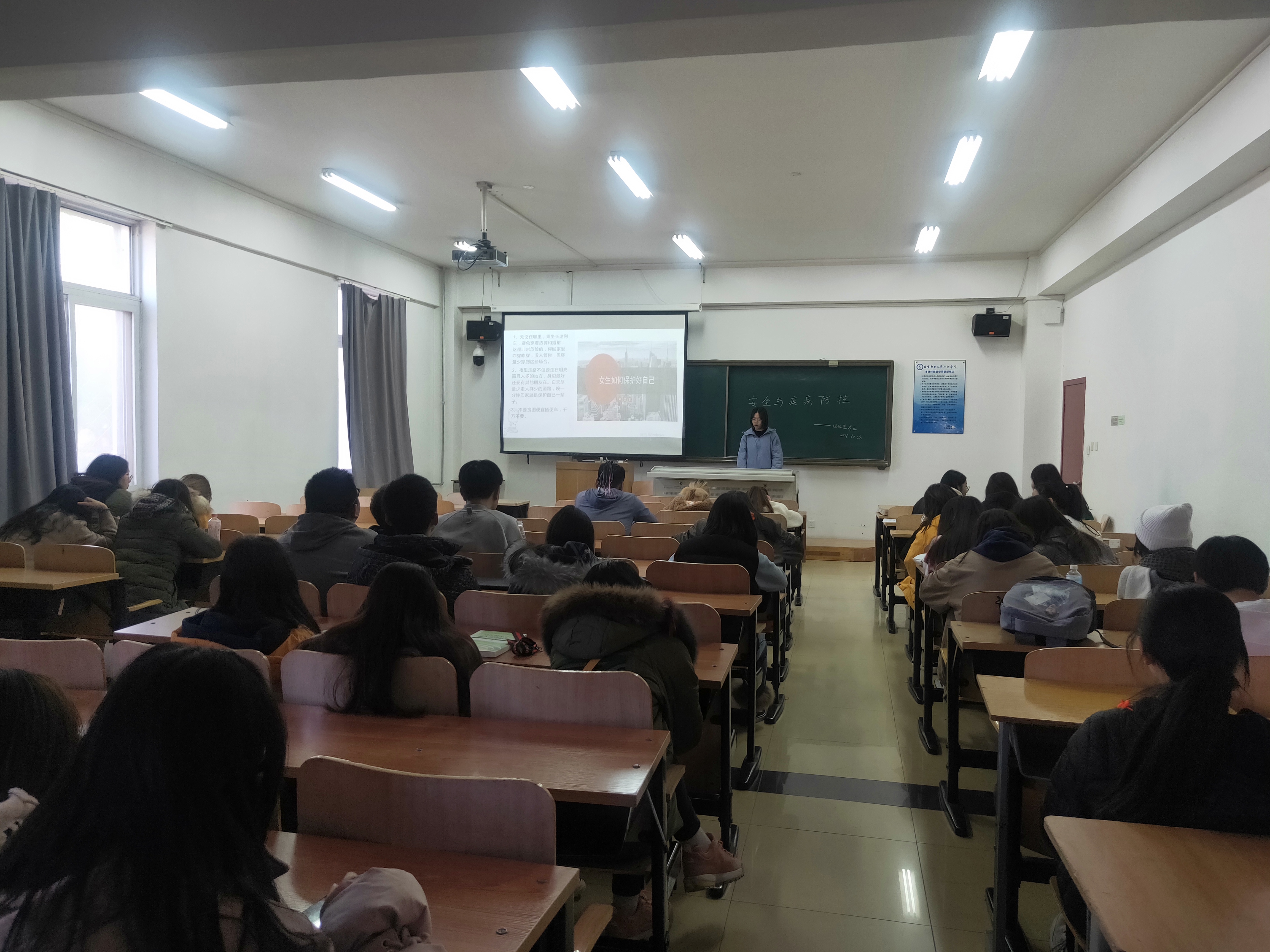 2019年10月23日-2019年10月28日,藝術(shù)與傳媒學(xué)院輔導(dǎo)員王雪老師組織2018級(jí)傳播學(xué)專業(yè)一班/二班、數(shù)字媒體技術(shù)專業(yè)一/二班、數(shù)字媒體藝術(shù)專業(yè)三/四班以班級(jí)為單位召開(kāi)《安全與疾病防控教育專題班會(huì)》,班會(huì)內(nèi)容主要圍繞三大主題《安全教育大講堂》《預(yù)防艾滋早知道》《常見(jiàn)傳染病防控知識(shí)》開(kāi)展。班會(huì)的開(kāi)展主要依據(jù)學(xué)校邀請(qǐng)的康莊鎮(zhèn)派出所馬所長(zhǎng)、北京市延慶區(qū)疾病預(yù)防控制中心工作人員及學(xué)院醫(yī)務(wù)室魏醫(yī)生給全校各班班委講述的相關(guān)安全與疾病防控的知識(shí)。