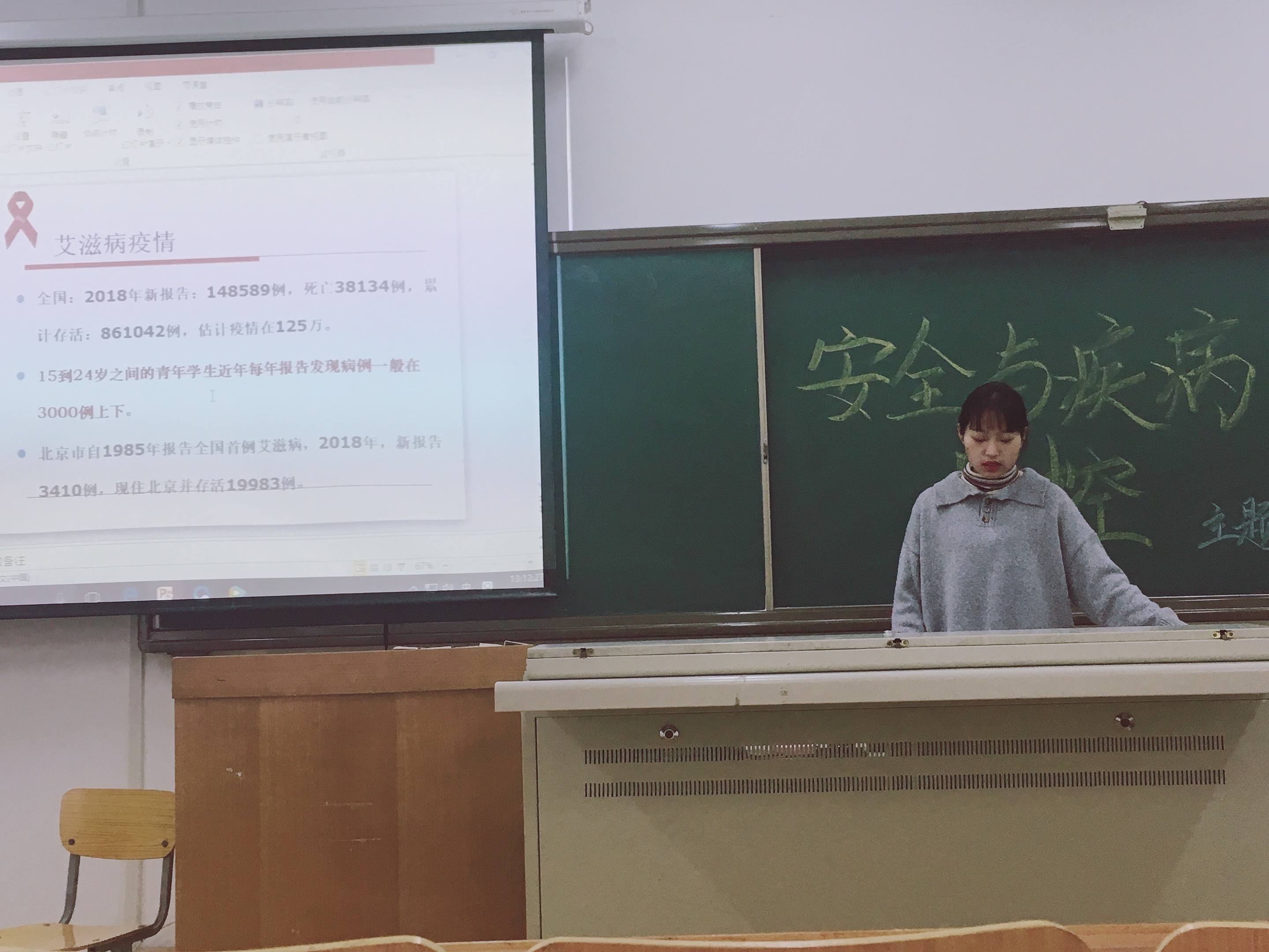 在班會(huì)一開(kāi)始,首先讓同學(xué)們做了關(guān)于艾滋病知曉率的試題,測(cè)試同學(xué)們對(duì)艾滋病知識(shí)的了解情況。隨后圍繞艾滋病定義、艾滋病疫情統(tǒng)計(jì)、艾滋病流行分期、疫情特點(diǎn)、感染表現(xiàn)、傳播方式、如何預(yù)防艾滋病、艾滋病檢測(cè)、國(guó)家關(guān)懷政策等內(nèi)容,逐一向同學(xué)們講述,提醒同學(xué)們提高對(duì)艾滋病知識(shí)的相關(guān)認(rèn)識(shí)、做好艾滋病預(yù)防與自我保護(hù)。