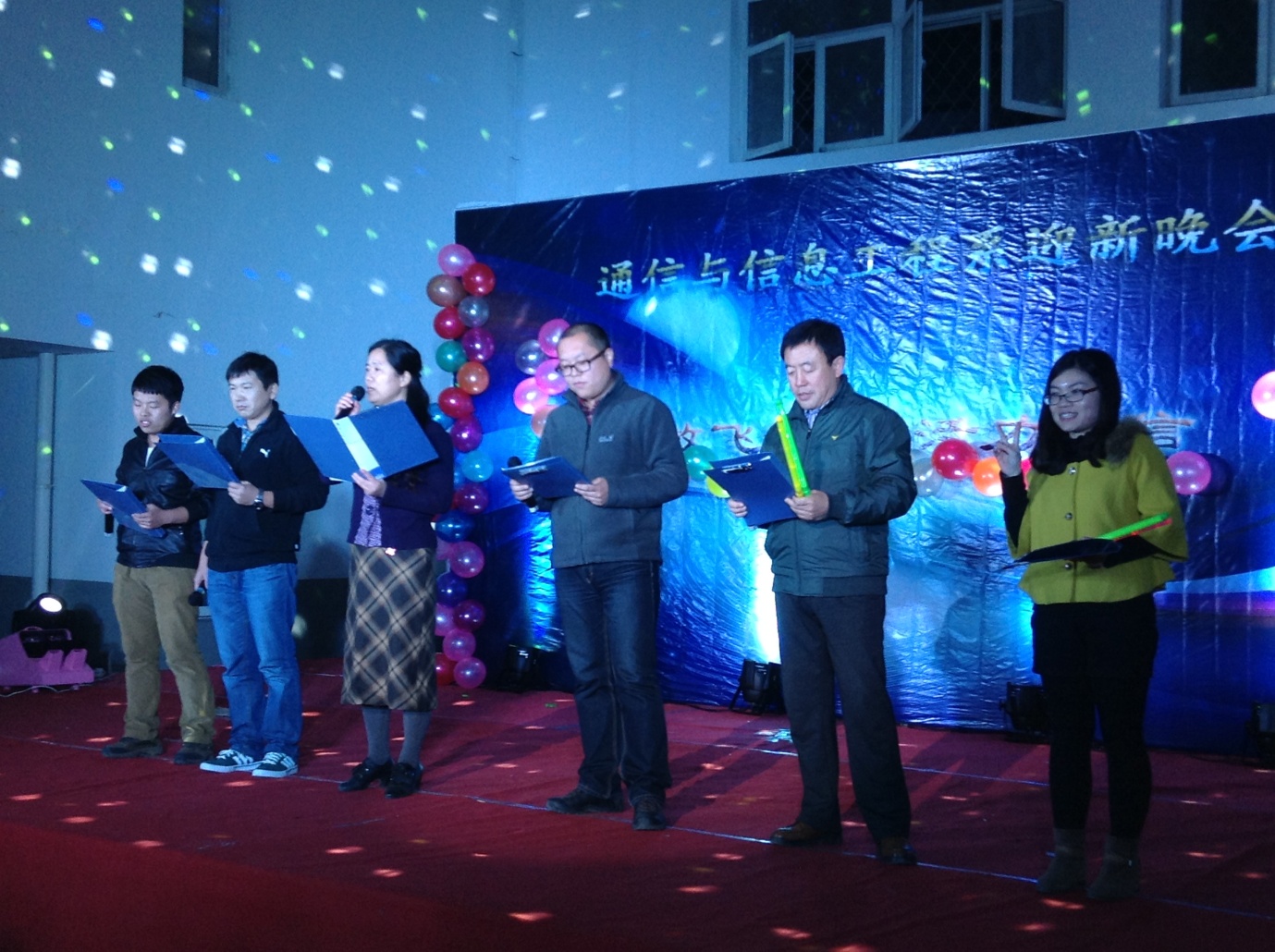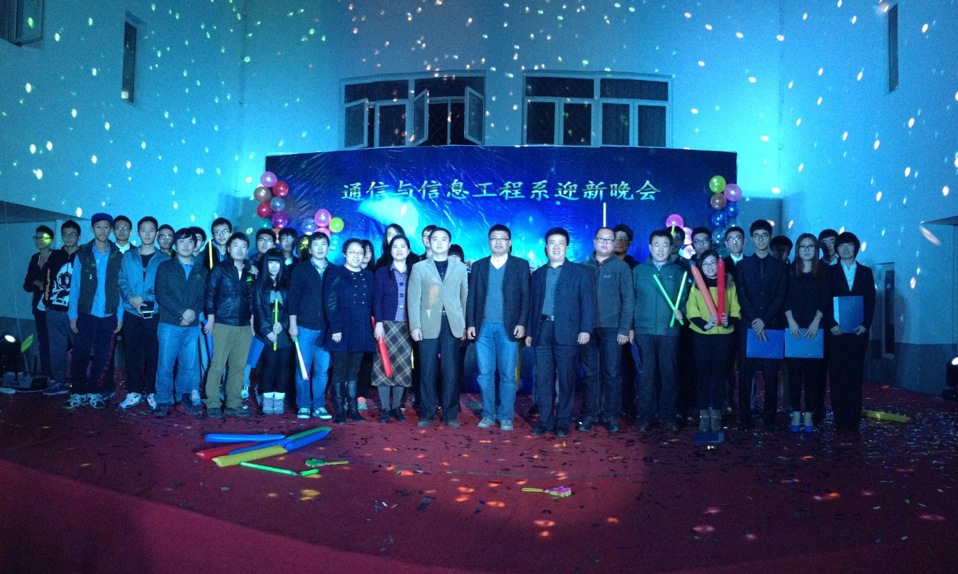 2014年10月22日晚上六點,通信與信息工程系2014級“放飛夢想,活力通信”迎新晚會在行知樓一層大廳隆重舉行。學生處副處長吳壽清老師、學生處倪洋老師、通信系副主任劉剛老師、副主任沙招友老師、工會副主席郭琳老師,宗保平老師及全體輔導員均蒞臨晚會現場,我系大一學生更是積極參加,座無虛席。
