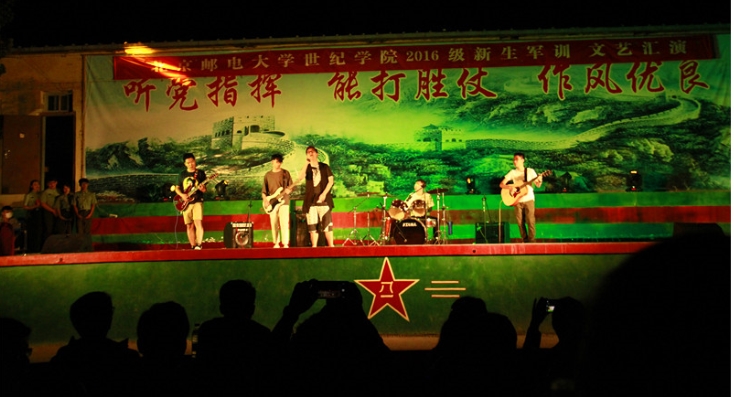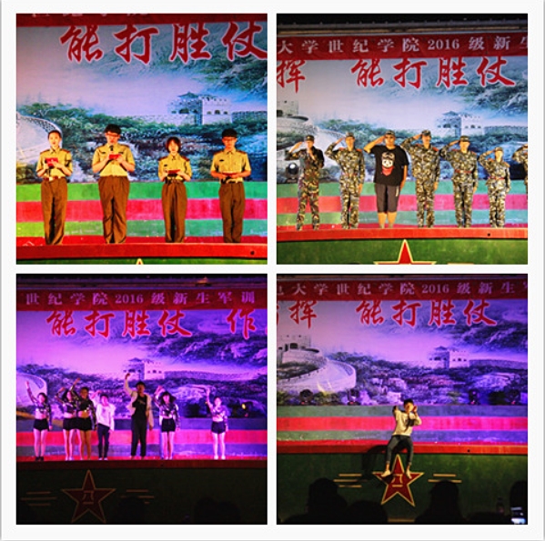 晚會以樂隊的一曲《Monster》拉開了帷幕,學員們個個精神抖擻,勁爆的音樂一消十幾日訓練的緊張氛圍。隨后由校園歌手大賽十佳歌手的幾位代表帶來了精彩的歌曲串燒,《寂寞的季節》、《我好像在哪里見過你》一首首歌嗨爆全場。在歡樂的氣氛中,晚會迎來了由熊文婕、黃鉦淏等八位大一新生帶來的活力四射的舞蹈《Bang》,他們精彩的演繹立刻引來現場觀眾熱烈的掌聲。正在意猶未盡之時,一首《我的歌聲里》給這次晚會帶來了小高潮,演唱者們將四種曲風匯于該曲,他們優美的歌聲贏得觀眾的陣陣喝彩。參加此次匯演的還有我院太陽舞社、逗你玩話劇社、街舞社等社團,輪番上演的精彩表演讓軍訓團的師生們沉浸其中,也為此次軍訓增添色彩。