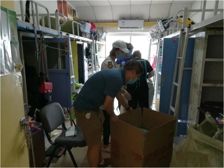 傳媒院畢業生物品數量多,打包任務繁重,面對龐大的工作量,傳媒院教工、學生黨支部第一時間動員疫情低風險地區教師,到校為學生整理宿舍物品,進行打包。傳媒院院長淮永建教授,賈立學教授等人帶頭,姬世祥、柳秋華、周艷霞、劉暢、馬天容、李琳、劉穎、王新蕊、李玲、趙鑫、劉忠福、胡桐彬、王雪、杜志超、朱孟娟等黨員同志和教師代表袁琳、林強等,分期、分批為深入學生宿舍,為畢業生提供了一次貼心且暖心的服務,用實際行動做好服務畢業生最后一公里的工作。工作期間,也得到了4位生活老師和2位保潔阿姨的大力支持。