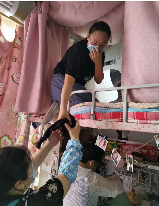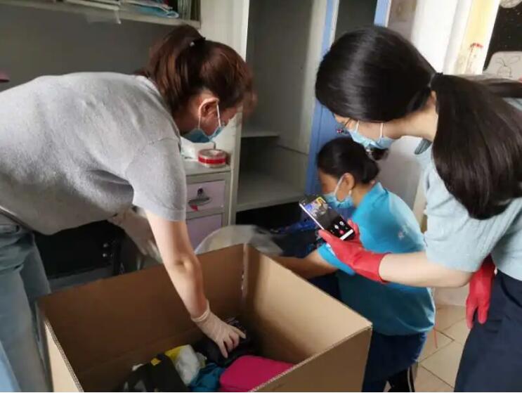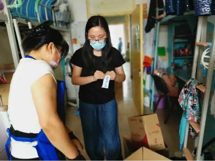 53間宿舍、292個床位、2000余件行李、10000余斤重……這一串數字的背后,是藝術與傳媒學院在畢業季送給學生的特殊記憶。老師們化身“打包大軍”,戴著口罩,為畢業生整理行李、清點打包。連日來,老師們干勁十足地奔赴各自“包干”的宿舍,開始了“打包直播”。有的老師一邊舉著手機視頻直播,一邊清點物品,還要與學生不斷溝通“好的,都裝進去…這個也裝進去了……”;有的老師怕粘貼在編織袋上的行李簽不夠牢固,還自制了標簽粘貼在編織袋的拎手上。老師們整理一段時間就要到樓道休息一下,進行深呼吸,否則難以繼續工作。一天下來,大家的臉上已被口罩勒出痕跡,全身汗流浹背,累得腰酸背疼。