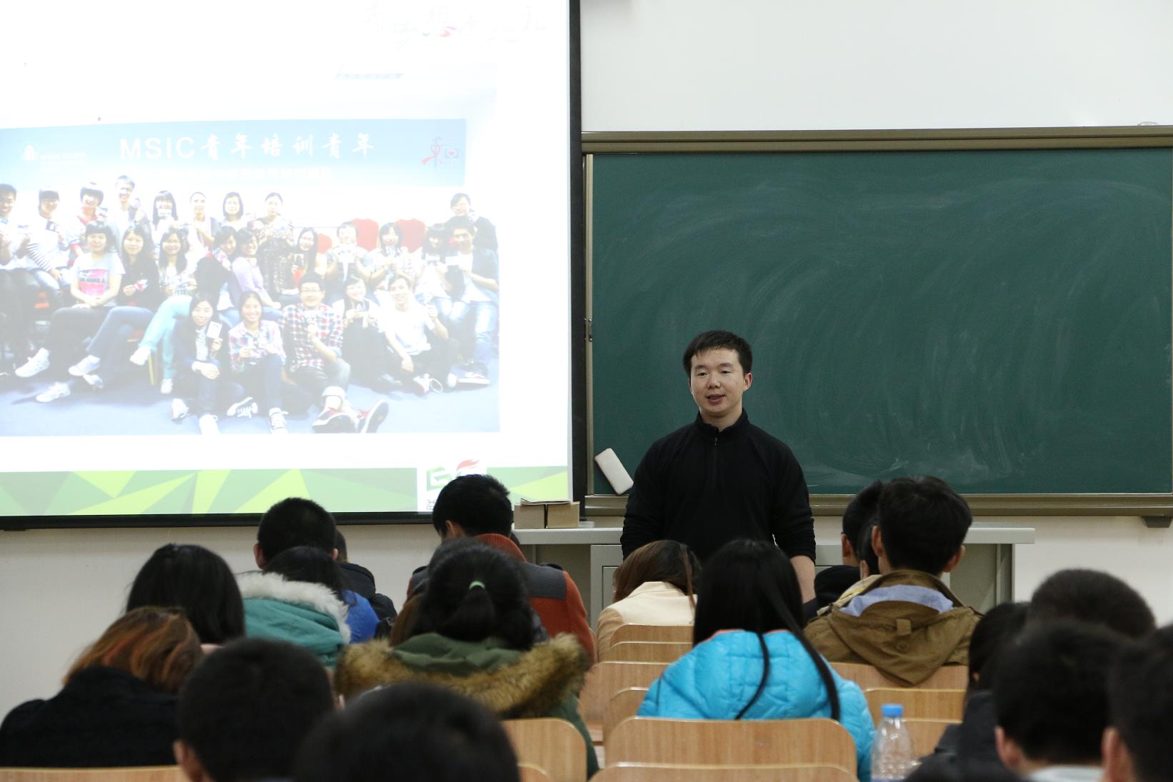 3月20日下午5:00,學(xué)思樓101教室早已座無(wú)虛席,西部陽(yáng)光暑期支教講座也在一段視頻下拉開(kāi)了帷幕,益微青年發(fā)展中心的項(xiàng)目主管張廣義作為本次講座的主講人娓娓道來(lái)。他從自身經(jīng)歷開(kāi)始講述自己如何走上公益道路,如何在支教中塑造自我、詮釋夢(mèng)想。他用三張照片引出三個(gè)故事,“我們認(rèn)真,夢(mèng)想才會(huì)成真;堅(jiān)持的代價(jià)最低;行動(dòng)自會(huì)有答案?!边@是他深切的感受。之后的一個(gè)小提問(wèn)“我們?yōu)槭裁匆ブЫ?,而支教又是什么”引發(fā)了同學(xué)們的深思。主講人認(rèn)為,在行動(dòng)前,如果先想清楚出發(fā)是為了什么,那么就等于成功了一半。他以自己的深刻體悟告訴同學(xué),志愿服務(wù)最先成就的不是別人而是自己。這樣的觀點(diǎn)讓很多志愿者感同身受,全場(chǎng)爆響了掌聲。