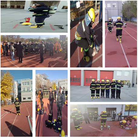 各參賽隊伍熱情高漲,參賽選手們積極拼搏,現場氣氛熱烈。我院參賽隊員積極拼搏,不僅發揮了應有水平,而且在100米負重跑和原地著滅火戰斗服操上分別以17秒89和51秒2突破了自身日常訓練時時間,取得不錯的成績。