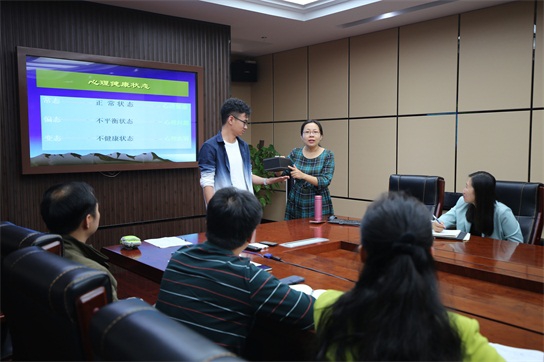 陳紅敏教授首先介紹了心理障礙是一個從心理健康到心理疾病的連續體,她在現場邀請輔導員體驗學生個案,展示了學生是如何被層層壓力壓到心理異常的,生動形象地展示了作為輔導員在這個時候如何才能給到學生支持,幫助學生緩解心理壓力。另外,陳紅敏教授還強調,大學生心理工作要對心理咨詢“來者不拒,去者不追”的原則進行調整,改為“來者不拒,去者要追”更合適,如果不“追”,學生心理問題可能變得越來越嚴重。