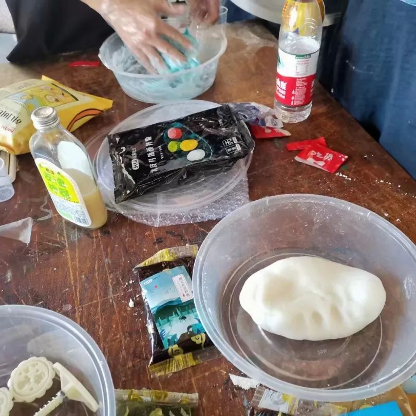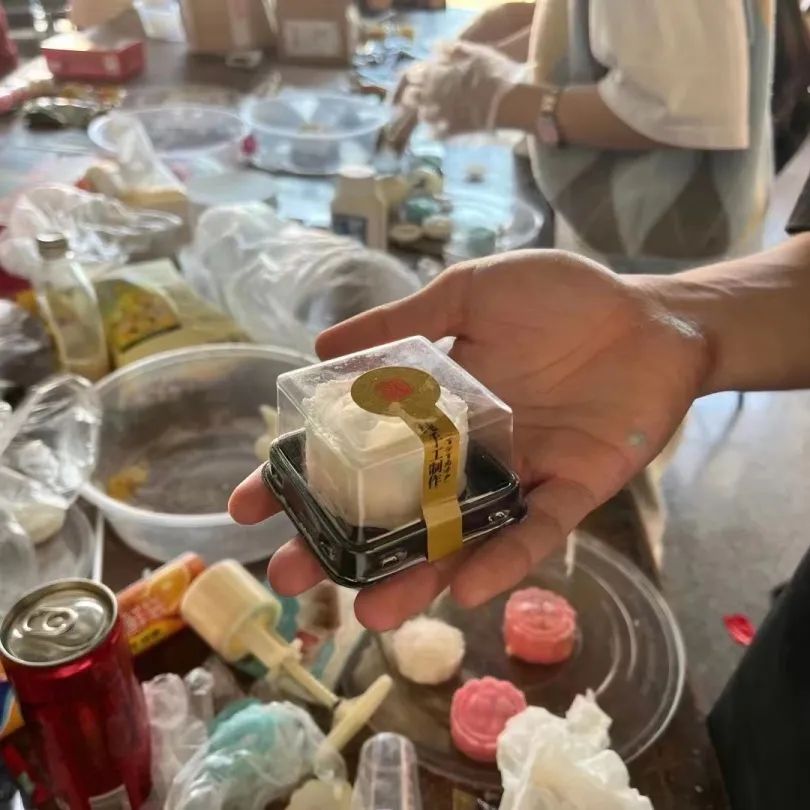 傳媒院2019級學生黨員陳笑語同學組織學弟學妹們自己動手制作月餅。
