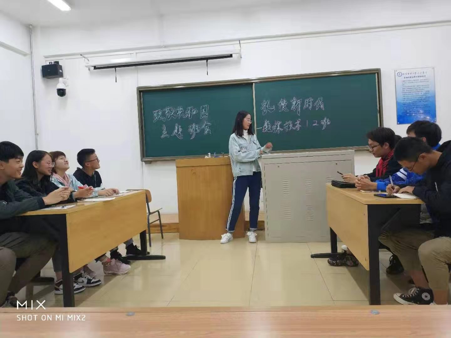 10月9日晚,藝術與傳媒學院2019級數字媒體技術學生在學思樓開展了以“致敬共和國 禮贊新時代”為主題的班會活動,在班會期間,同學們還開展了圍繞“國慶大閱兵是否應將中國的現代化軍事裝備展現給世界”為主題的辯論賽,以此來表達了同學們對祖國的熱愛之情。