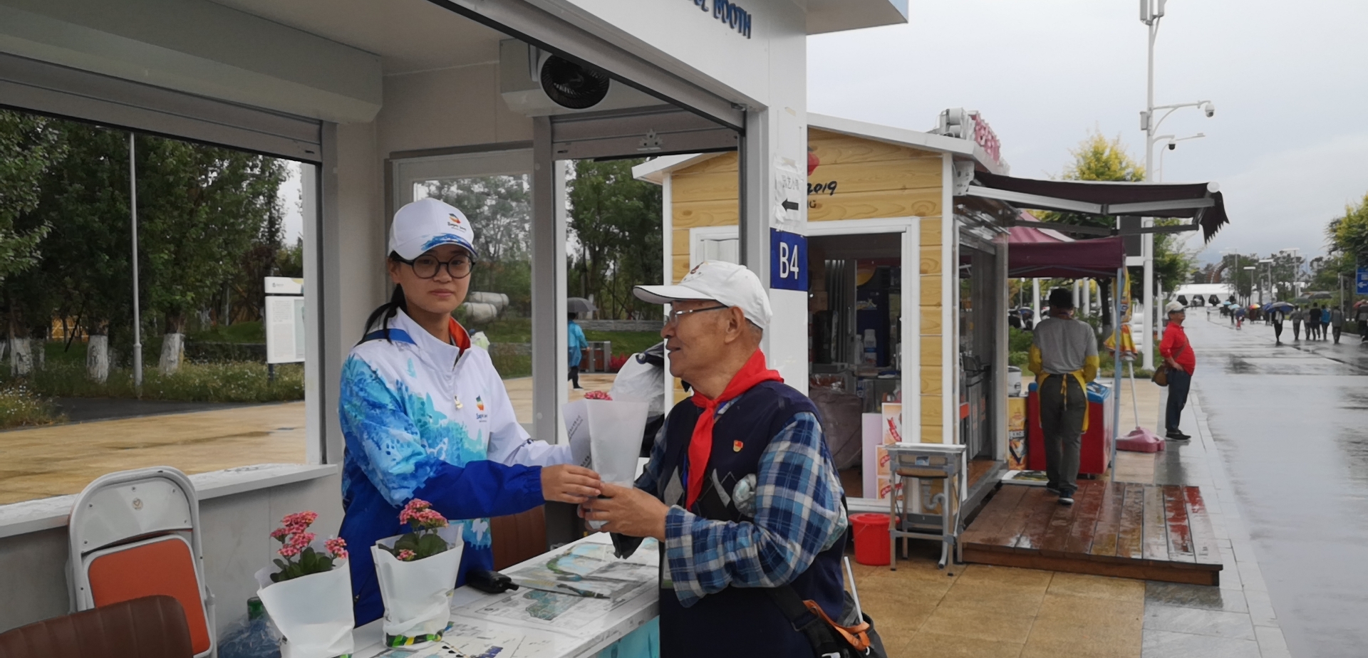 一大早,世園會(huì)像往常一樣8:00準(zhǔn)時(shí)開園,但不同的是,今天前來參觀的游客們當(dāng)中,相當(dāng)一部分是老師,他們今天可以憑工作證免費(fèi)進(jìn)園參觀,度過一個(gè)別樣的教師節(jié)。世園會(huì)的志愿者別出心裁地為老師們精心準(zhǔn)備了60株綠植,分布在客流量比較多的A6、A10、B4和B6四個(gè)崗?fù)ぃ驳弥慰褪抢蠋煟麄儽銦崆檠笠绲厮蜕线@份教師節(jié)的祝福,老師們也被計(jì)科系這群青春活力的志愿者們這份熱情所感動(dòng)。