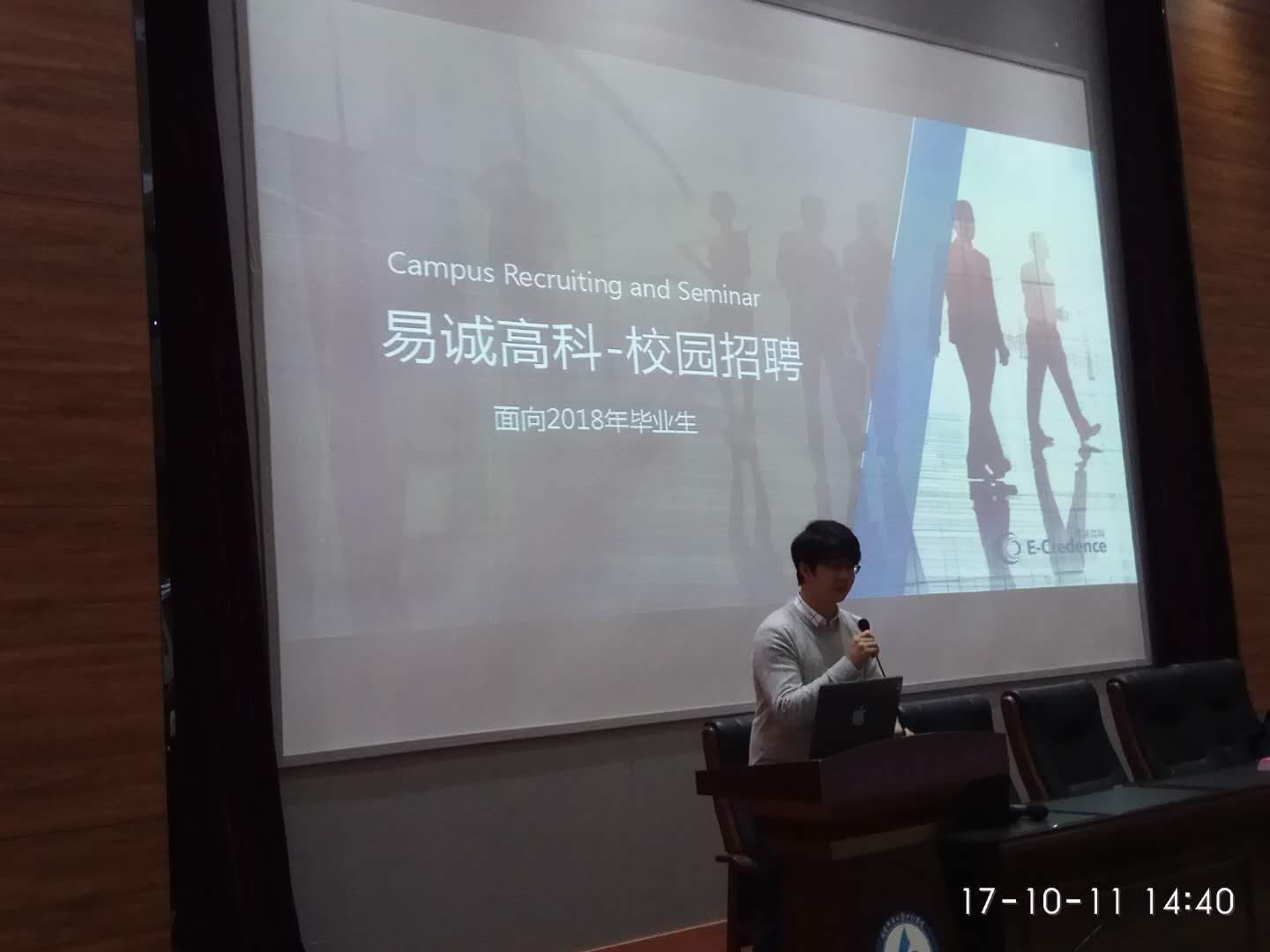 10月11日下午,北京易誠高科科技發展有限公司2018屆畢業生校園宣講招聘會在學院圖書館學術報告廳成功舉辦,計科系2018屆全體畢業生參加了本次宣講招聘會。