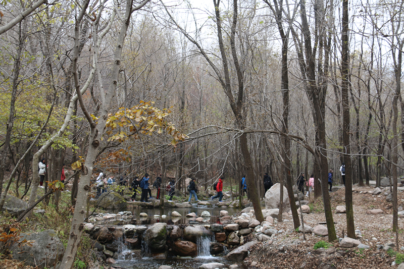 抵達目的地后,團隊按照既定計劃分成4支小分隊,沿著林間小路往樹林深處走去,大家的歡聲笑語讓原本寂靜的景區一下子熱鬧起來。隊員們結伴穿梭在樹林中,身旁清澈的小溪潺潺流過,幽幽水韻,聲聲怡人。美麗的景色吸引同學們紛紛駐足,舉起相機連連拍照,老隊員也結合之前隊內攝影培訓的理論知識,細致的向新人講解拍攝技巧。大家邊賞景邊暢所欲言,清新的空氣、泥土的芳香令人心曠神怡。