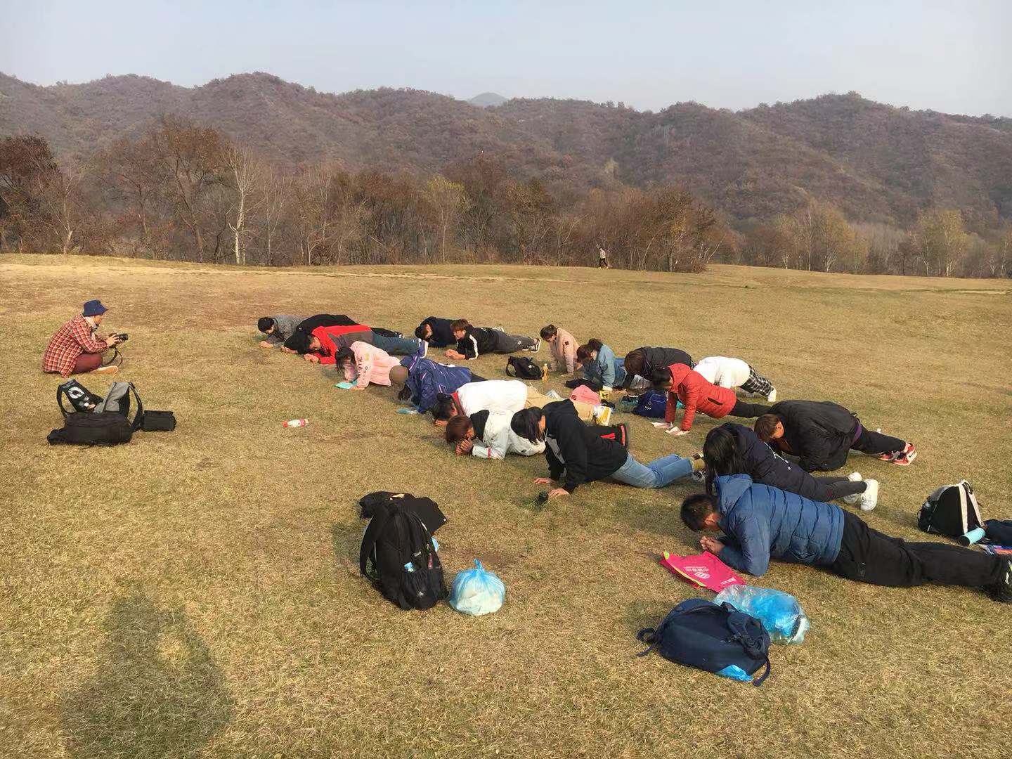 簡單的午餐結束后,同學們在小山坡上席地而坐。在秘書處的組織下,游戲環節開始,你畫我猜、能量傳輸……在一項項考驗團隊協作的游戲中,各組成員使出渾身解數,時而手舞足蹈,時而急得跺腳,時而拍手叫好,加油助威聲此起彼伏,大家玩得不亦樂乎。時光流逝,一天的活動臨近尾聲,歸程途中,在盡興之余,各部部長詳細安排了關于活動的拍照講評、微信推送、新聞稿撰寫等工作。