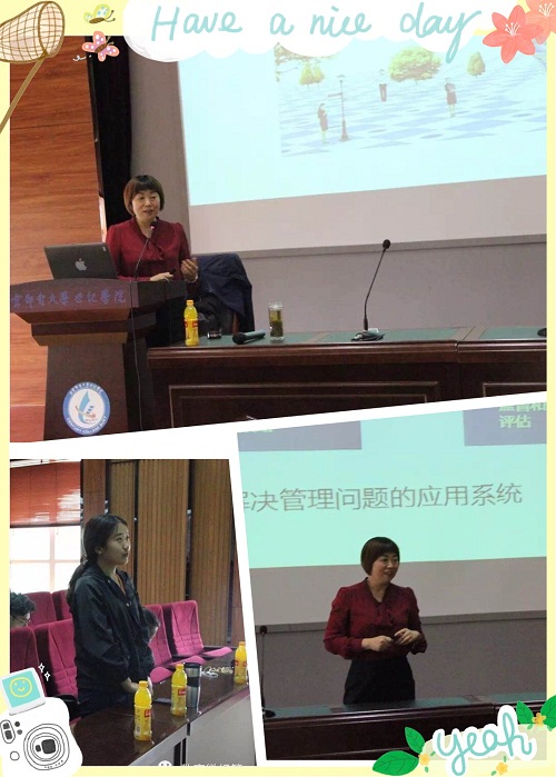 為了使學(xué)生進(jìn)一步了解實(shí)施顧問(wèn)崗位的基本情況,全方位剖析自己是否適合顧問(wèn)崗位,6月6日,經(jīng)濟(jì)管理系學(xué)習(xí)部主辦了用友職業(yè)宣講會(huì),邀請(qǐng)北京弘睿建智教育教育咨詢(xún)工資總經(jīng)理、用友集團(tuán)信息化人才培養(yǎng)基地主任張健蕊擔(dān)任主講。