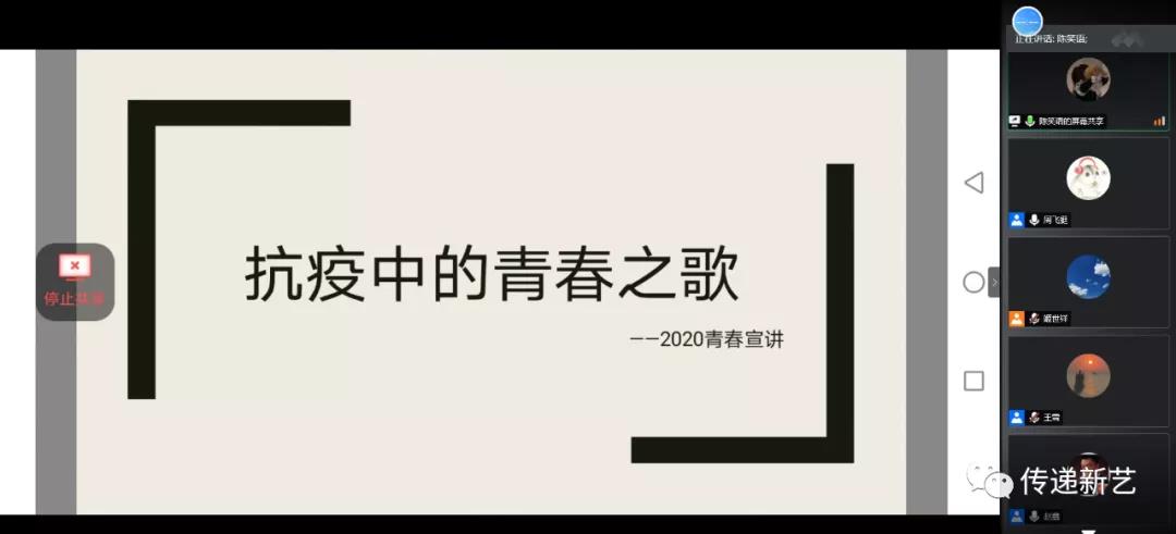 2020年7月28日14時,傳媒‘戰疫’青春宣講團通過騰訊會議系統向2018級全體學生述抗疫故事,樹立制度自信。宣傳團成員以學習習近平總書記給北京大學援鄂醫療隊“90后”黨員回信、五四寄語等重要精神為契機,開展線上專題宣講。傳媒院副院長姬世祥,團總支書記趙鑫,輔導員王雪和2018級全體學生參加了此次活動。