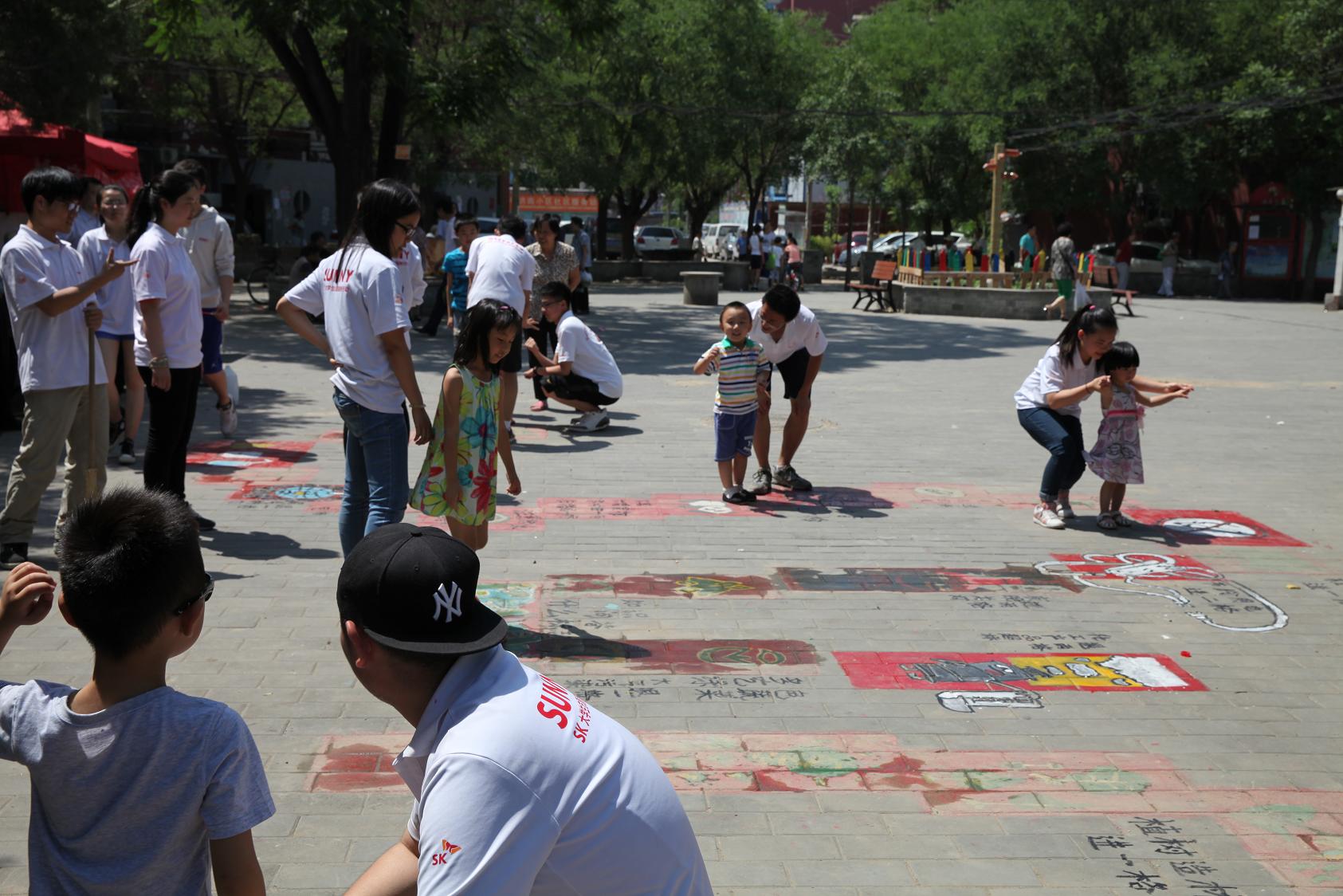 8日早上,志愿者們?cè)诘乩L部分帶孩子們進(jìn)行“跳格子”游戲。為吸引更多居民的關(guān)注,隊(duì)員們隨著音樂(lè)一起跳起了集體舞,社區(qū)的小廣場(chǎng)頓時(shí)聚集了很多居民,小朋友們也非常開(kāi)心地同志愿者們進(jìn)行著游戲。下午,由于下起大雨,戶外活動(dòng)無(wú)法正常進(jìn)行,因此將微講堂的地點(diǎn)改到了社區(qū)居委會(huì)內(nèi)。盡管天公不作美,但仍然有居民主動(dòng)來(lái)居委會(huì)找到志愿者,參與了所有的課程及展示。