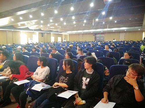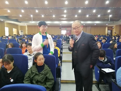 涂立森老師用自己的豐富經驗和閱歷,給大家講解分析了許多對未來規劃案例,涂立森老師的每一句話語都展露出對同學們的期待以及希望同學們對待學術一絲不茍,積極進取。涂立森老師把人生比做40公里的馬拉松比賽,告訴同學們要端正態度,合理分配并且堅持,要緊后槽牙完成比賽,在場的同學也表達出了對講師的熱情,頻頻與講師互動,現場氣氛十分活躍。