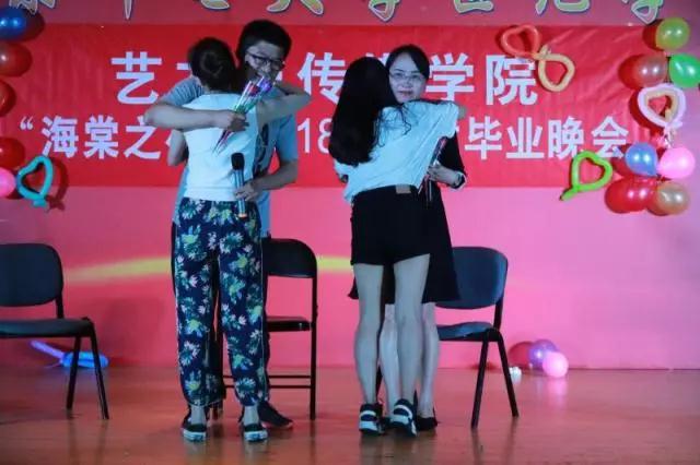 青春是熱血、是拼搏。一首《追夢赤子心》是籃球隊送給即將畢業的學長的禮物,也是一種不一樣的傳承。我穿上西裝走向了現實辛苦的社會,你穿上數媒的球衣為我拿下一次冠軍!曹穎潔、胡長清、楊賢超同學帶來的歌曲串燒也是為即將告別的學長學姐準備的禮物。大四畢業生代表對郭章碧、趙鑫2位輔導員老師的訪談觸動了大家“離別”的心弦,輔導員老師及晚會現場的同學們都難掩離別愁緒,潸然淚下。送別的歌曲不易唱出口,從《送別》到《時間都去哪了》再到《離開》,唱的是不舍,唱的是離愁。