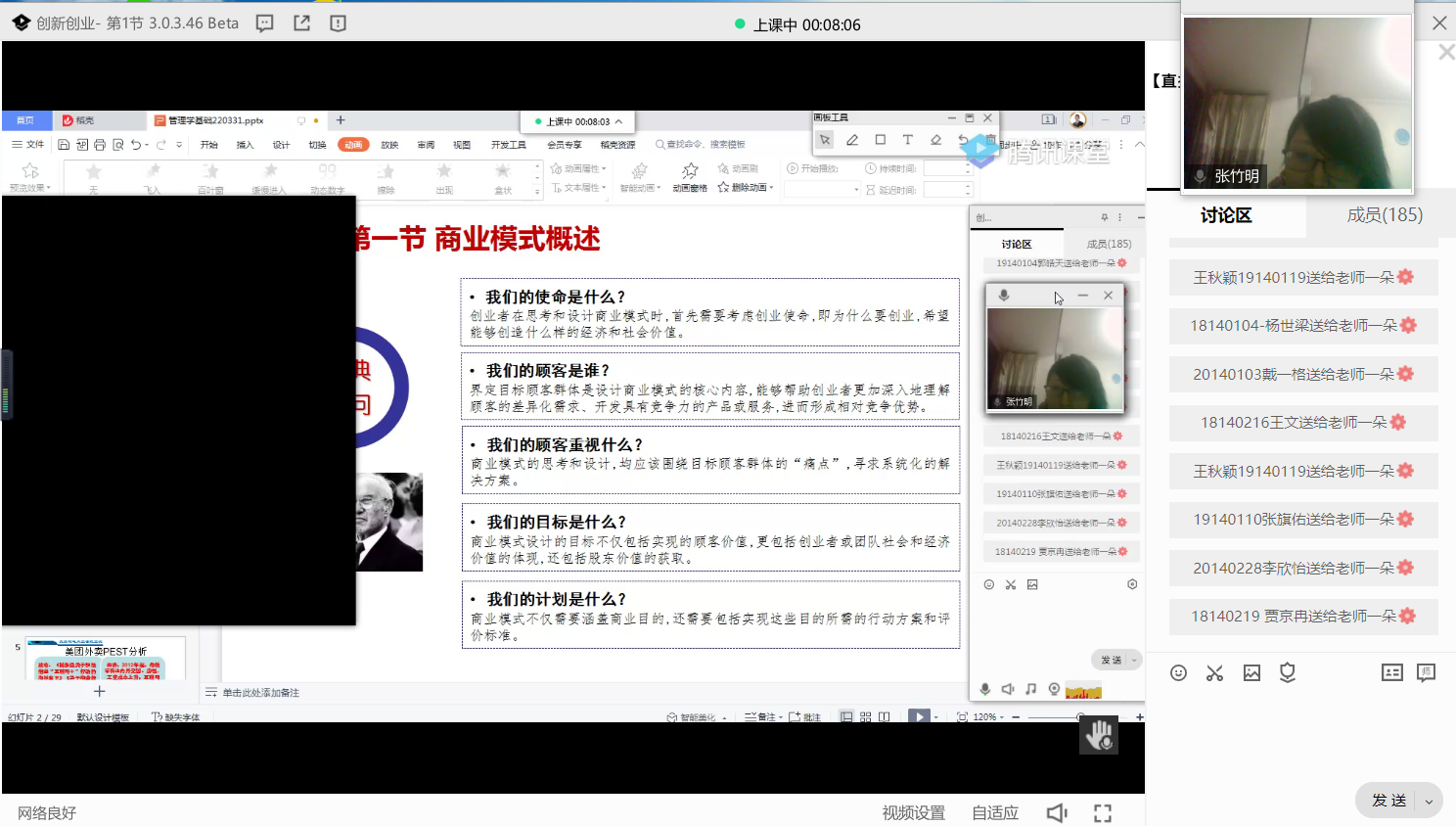 一個半小時的講座使外語系的師生們受益匪淺,大家紛紛為郭老師獻上“一朵小紅花”表示感謝。會后,同學們就自己的商業計劃書填報問題積極與指導老師交流了改進方法。此次騰訊課堂培訓活動,為同學們提供了一個更深層次了解“互聯網+”創新創業大賽的機會,使大家深入了解了創新創業的重要性,并對未來發展方向有了進一步的認識和把握。(外語系張竹明 供稿)