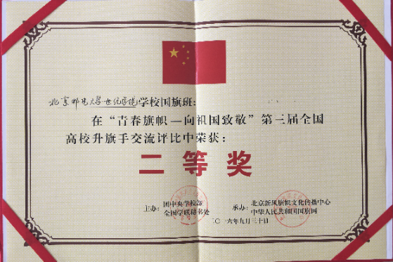 9月30日,在北京市解放軍裝備學院昌平士官學校舉行的“青春旗幟——向祖國致敬”第三屆全國高校升旗手交流展示比賽中,我院國旗護衛隊取得了二等獎的佳績。