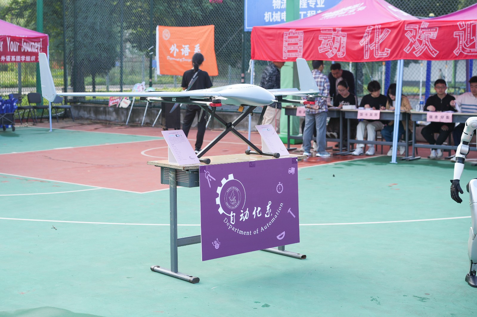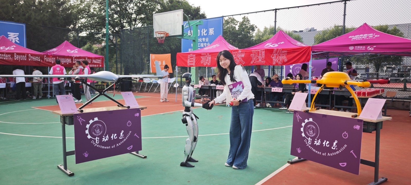 清晨7時,迎新工作正式啟動。報到流程高效便捷,各環(huán)節(jié)銜接順暢,在師生志愿者的準(zhǔn)確指引下,新生們順利辦理各項手續(xù),青春的臉龐洋溢著對大學(xué)生活的期待。各系(院)通過特色鮮明的迎新活動,幫助新生快速融入校園:HY-3VS垂直起降安防無人機(jī)、HY-1200多旋翼測繪無人機(jī)的現(xiàn)場展示引來陣陣贊嘆;宇樹G1人形機(jī)器人與新生趣味互動;“紅包”墻為新生送去了新學(xué)期的美好祝福;現(xiàn)場直播更是吸引大家熱情體驗,線上線下同步點燃迎新氛圍……科技與人文交融的場景,為秋日校園注入了勃勃生機(jī)與創(chuàng)新活力。