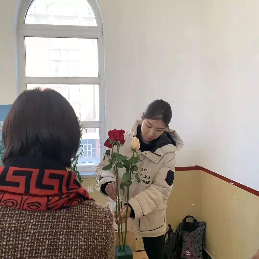 插花進(jìn)一步培養(yǎng)了老師和同學(xué)對美的感受,也提升了他們綠化家園、美化環(huán)境的生態(tài)文明意識。而我們的主題“贈人玫瑰 手有余香”更是彰顯了志愿者奉獻(xiàn)他人也提升自我的一種品格。相信在此活動后,志愿者們能以更熱烈的心來燃燒自身奉獻(xiàn)事業(yè)!