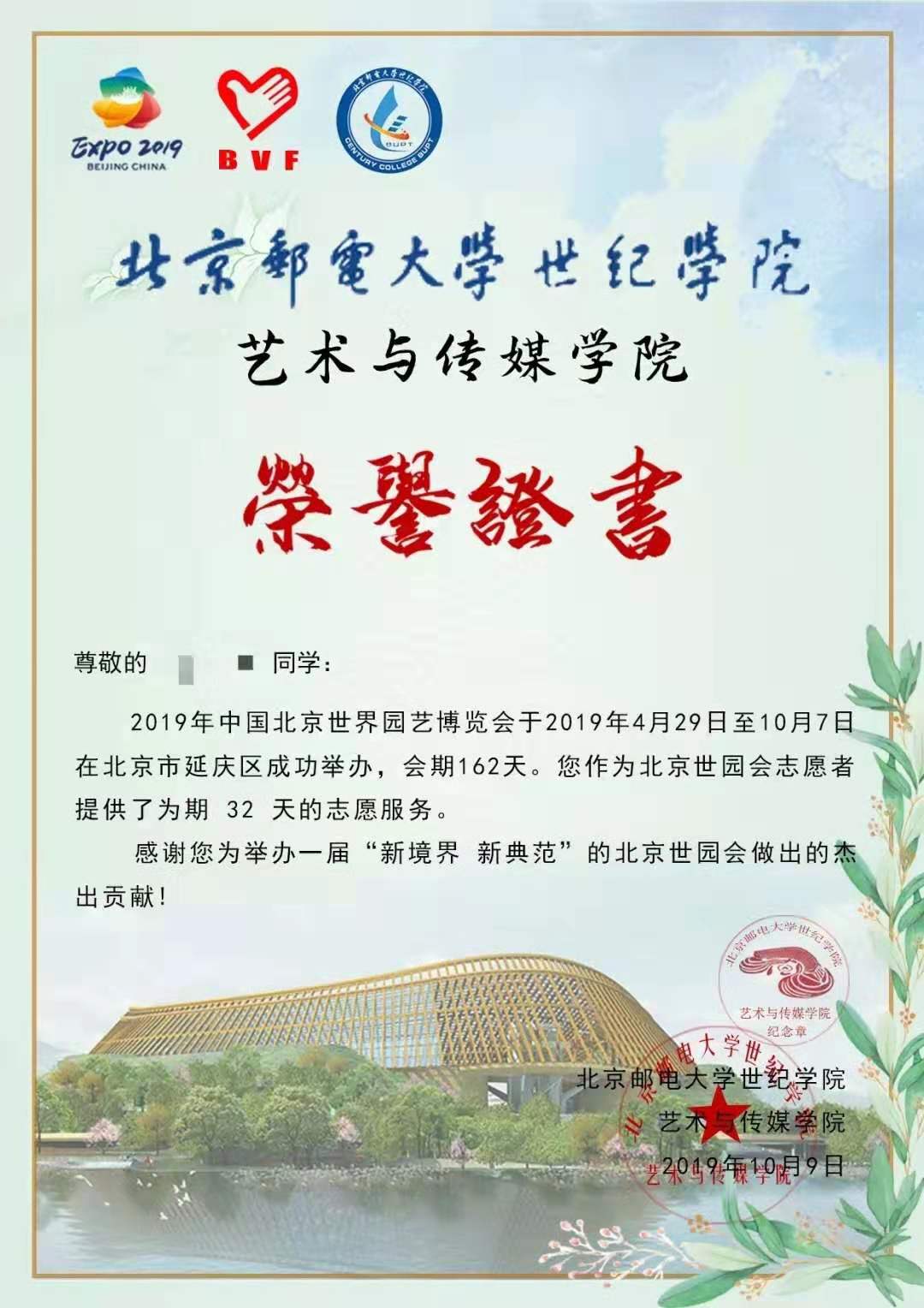 而后,藝術(shù)與傳媒學(xué)院院長淮永建、副院長姬世祥以及團(tuán)委老師何姝,先后對傳媒院志愿者在世園會所做的付出給予了簡單總結(jié)與高度肯定,并為志愿者代表們頒發(fā)了榮譽(yù)證書。