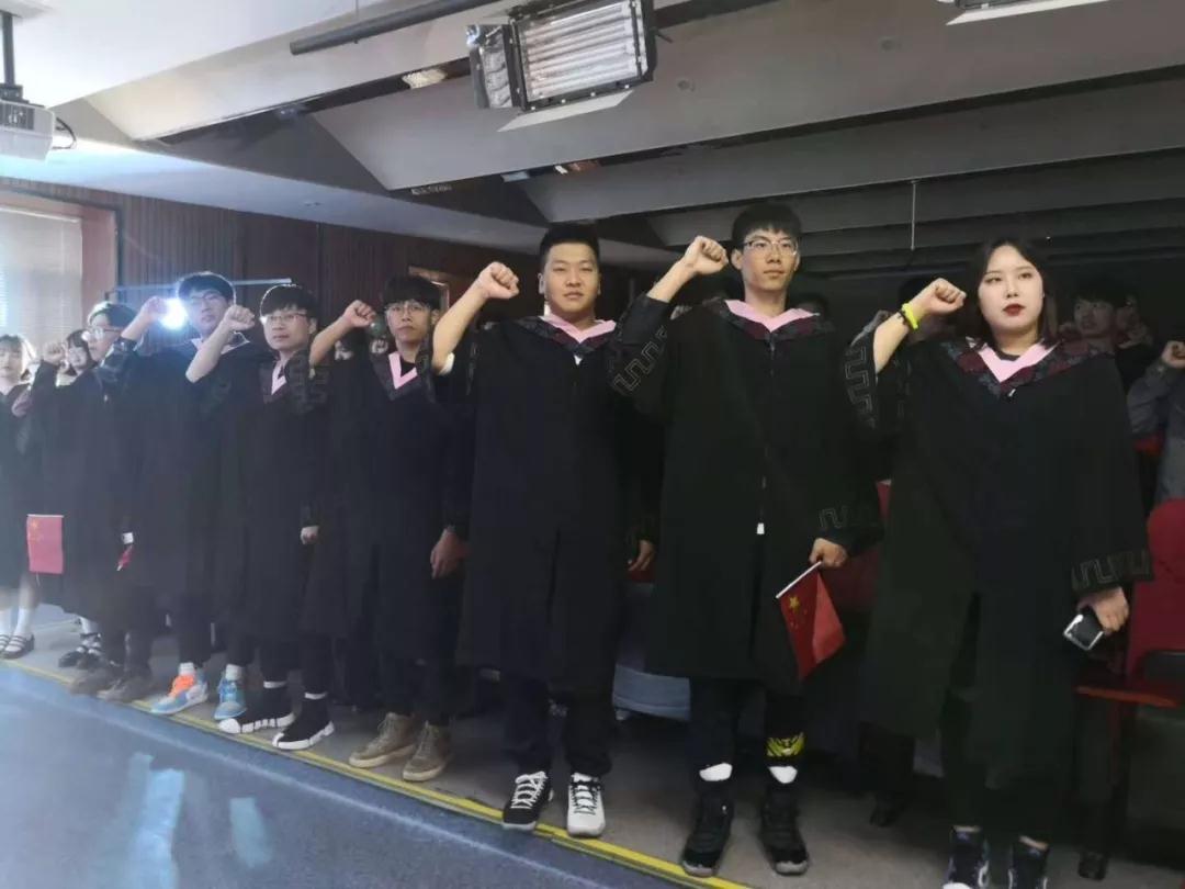 感恩篇的環節,劉忠福、劉璐璐兩位老師對畢業生進行“最后一次點名”,在點到“傳媒院2019屆全體畢業生”時,全體答“到”,那感人的一幕使在場的師生都潸然落淚。即將步入社會,劉忠福老師作為長輩帶領畢業生集體宣誓:作為新時代中國青年要樹立遠大理想;要熱愛偉大祖國;要擔當時代責任;要勇于砥礪奮斗;要練就過硬本領;要錘煉品德修為,到祖國最需要的地方去……不辜負我們這個偉大時代。隨后,大家還共同觀看了專題視頻,飽含了老師對即將畢業的同學滿滿的祝福。傳播學專業教研室陳遲老師用一段《青衣》朗誦,表達對同學們堅持夢想,努力拼搏的美好祝愿。