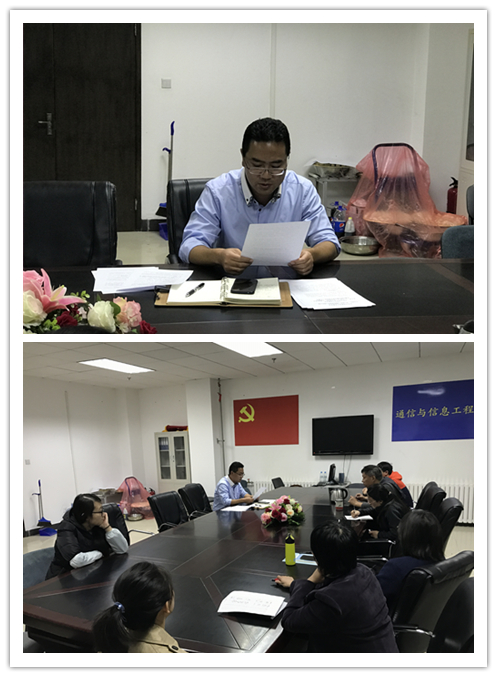 11月6日下午,通信教工支部在明德樓221會議室開展“不忘初心、牢記使命”集體學習研討會并召開對照黨章黨規找差距專題會議,全體黨員參加會議,會議由黨支部書記郭超主持。