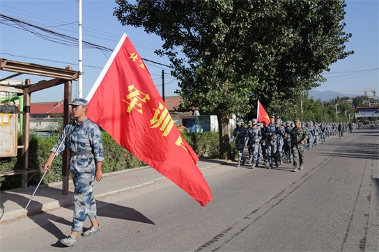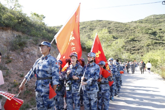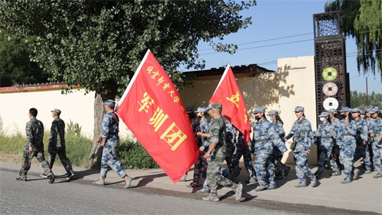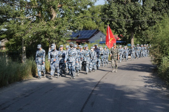 早上8:00,伴隨著一聲嘹亮的軍哨,全體軍訓學生迅速以連為單位整齊列隊,在教官和輔導員的帶領下,從八達嶺軍訓基地出發。軍訓拉練行軍指揮組、醫療保障組等人員全部到位,為此次拉練活動提供了強有力的安全保障。同學們列隊行走在村莊、青山間,教官與輔導員組織大家一路高唱軍歌、呼喊口號,鼓舞學生行進士氣。同學們臉上洋溢著微笑,汗水與笑容同在,感受著團隊力量和軍人的堅強意志。