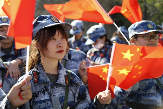 抵達山頂時,隊伍原地休整,大家雖有疲意,但臉上都洋溢著成就感,放松的是身體,不懈的是作風。此時,隊伍間響起了吉他、二胡等樂器的伴奏聲,“我和我的祖國,一刻也不能分割,無論我走到哪里,都流出一首贊歌……”一首《我和我的祖國》霎時間形成了“千人合唱”,歌聲悠揚,響徹山谷,激發了同學們強烈的愛國熱情。伴隨著優美的旋律,同學們用飽滿高亢的熱情,向祖國獻上最深情的告白和祝福。同學們第一次穿著軍裝以“軍人”的身份獻唱祖國,喜迎建國70周年,自豪感、莊嚴感都油然而生,不少同學在歌唱過程中也都熱淚盈眶。