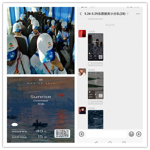 每天清晨的6:15,本來應該最安靜的班車上卻傳出了一陣陣英語單詞聲,同學們自發的利用班車上的半個小時時間,用手機單詞學習軟件(不背單詞和百詞斬)進行了早自習的英語單詞學習打卡任務。帶隊老師也進行了學習強國的學習和打卡任務。