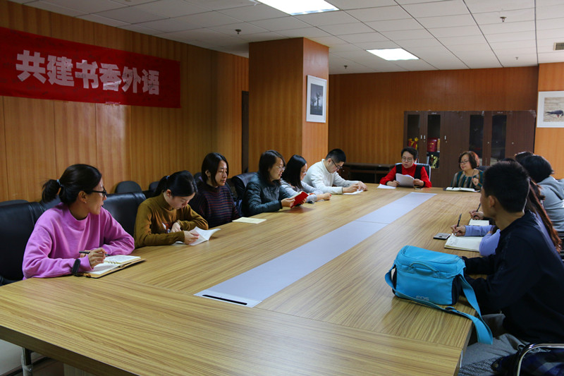 2019年11月6日中午12點,外語系師生聯合黨支部在明德樓228會議室召開對照黨章黨規找差距專題會議,支部全體成員參加此次會議,會議由支部書記倪洋主持。