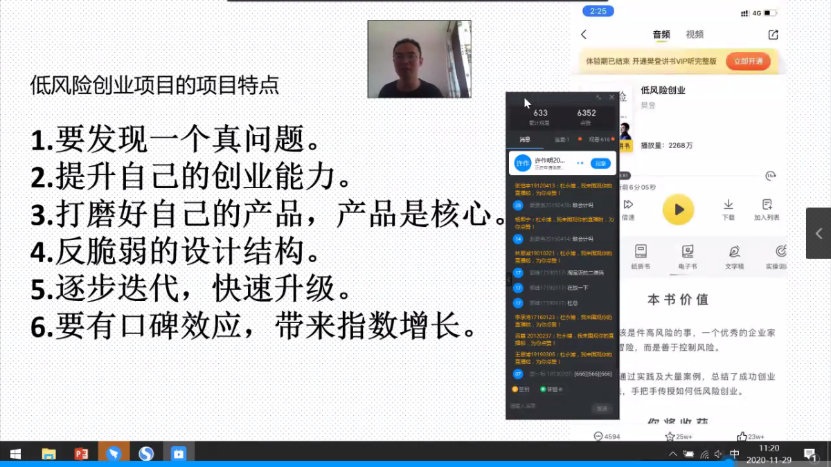 杜老師講座內容從“相對脆弱的創業項目”、“相對反脆弱創業項目”和“大學生可行的創業項目”三個角度展開分析,并結合自身從事的項目,對各個創新項目的利弊作出總結。