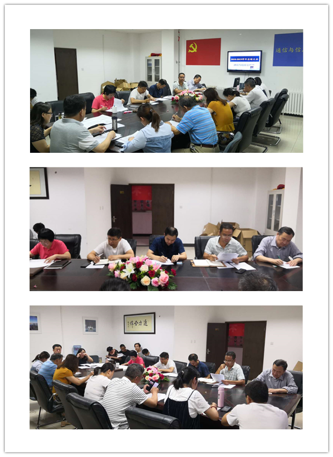 考核按部門開展,按照輔導員、通信教研室、物聯網教研室、電子信息工程教研室、電子電路教研室依次進行,每位老師對自己的師德表現、過去一學年的工作、取得成績、存在不足及改進之處進行了認真回顧和總結。老師們各自總結,相互聆聽,相互學習,取長補短,并進行了互評。