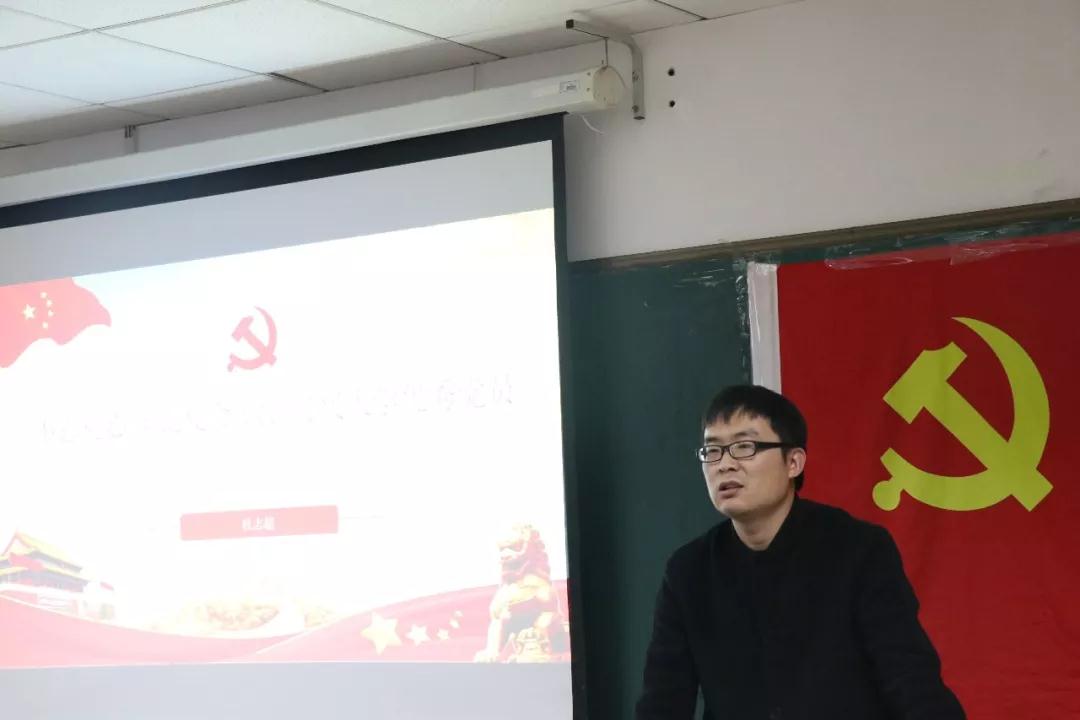 首先,輔導(dǎo)員杜志超以“不忘初心,牢記使命,做新時(shí)代大學(xué)優(yōu)秀黨員”為主題,為同學(xué)們帶來一場(chǎng)生動(dòng)的黨課。杜志超圍繞十九屆四種全會(huì)精神、《榜樣4》學(xué)習(xí)等內(nèi)容,向同學(xué)們詳細(xì)講解了共產(chǎn)黨的初心,介紹入黨程序等多項(xiàng)內(nèi)容,督促同學(xué)們積極向黨組織靠攏,學(xué)習(xí)黨的精神,告訴同學(xué)們要提升政治覺悟。