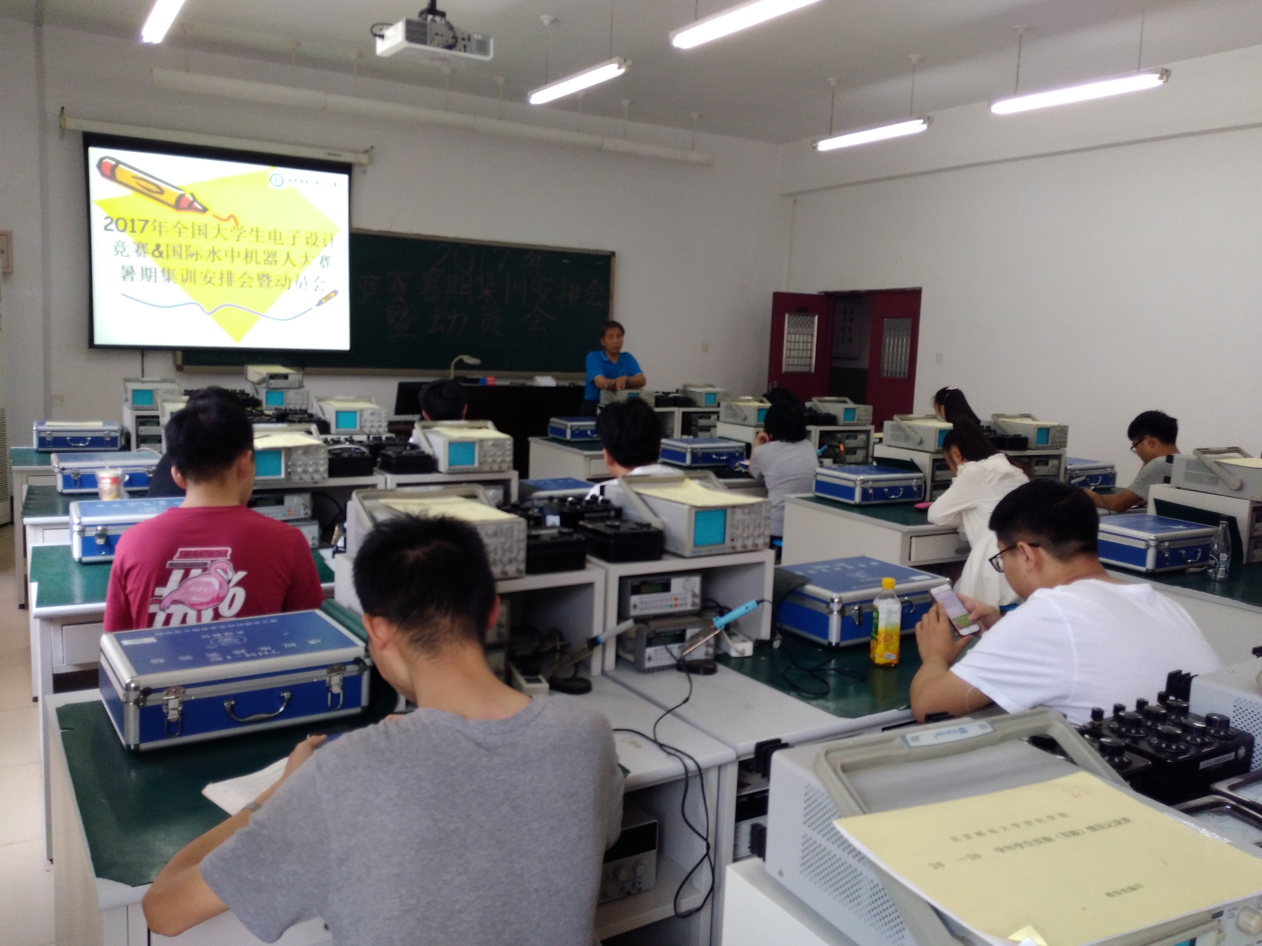 為著力打造科技通信,培養學生的實踐動手能力,6月26日,通信與信息工程系召開了全國大學生設計競賽和國際水下機器人大賽暑期培訓安排暨動員大會。通信系副主任劉剛、電子電路教研室主任趙文深、北郵電路中心王丹志副教授、實驗室張震老師及參賽的16名學生參加了本次動員會。