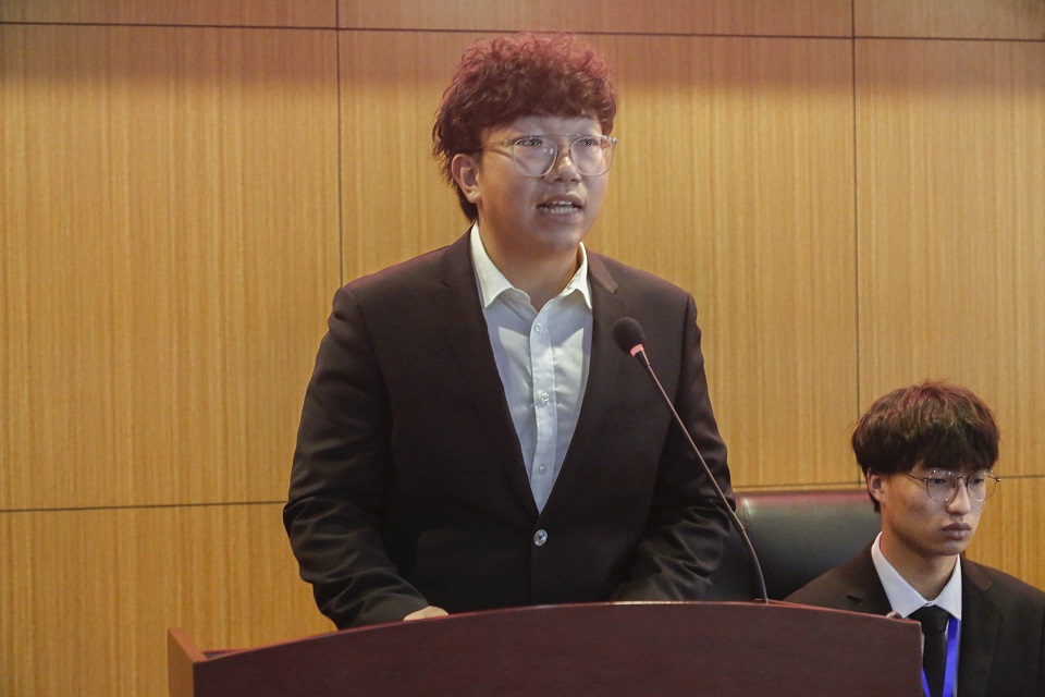 大會(huì)主席團(tuán)成員杭宇宣讀第五次學(xué)生代表大會(huì)致全院同學(xué)的倡議書。他號(hào)召大家堅(jiān)定理想、勇于創(chuàng)新、愛校榮校、不忘初心,在實(shí)現(xiàn)個(gè)人全面發(fā)展的同時(shí),共筑世紀(jì)美好藍(lán)圖。