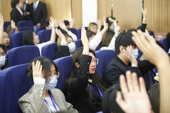 隨后,十二位學(xué)生委員會(huì)成員依次進(jìn)行競(jìng)選宣言,通過學(xué)生代表的投票表決,大會(huì)選舉產(chǎn)生了第十七屆學(xué)生會(huì)委員會(huì)成員,分別是石江顥、石宇慧、付瑩、李笑笑、李紋、陳笑語、邵潤(rùn)楠、晏正涵、梅蘇麗(以姓氏筆畫為序)。